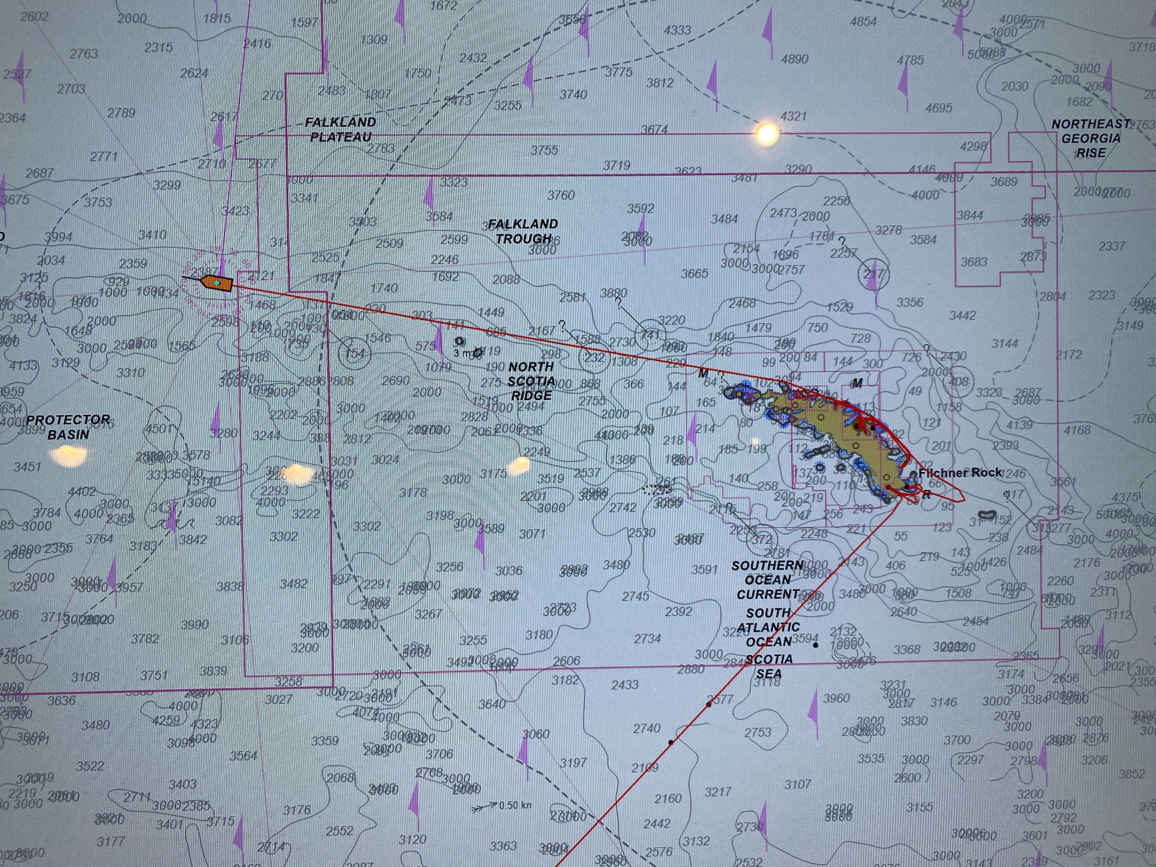 National Geographic Endurance sailed northwest all day, headed to explore the Falkland Islands. The seas were big, up to six meters or eighteen feet! It was an ocean crossing not to be forgotten. Everyone used this day to catch up on rest and reading. The naturalists gave presentations in the lounge while some guests chose to enjoy the library on Deck 8. As the day ended, our onboard doctor recounted his experience of evacuating an entire hospital during the Santa Rosa wildfires! Exciting!