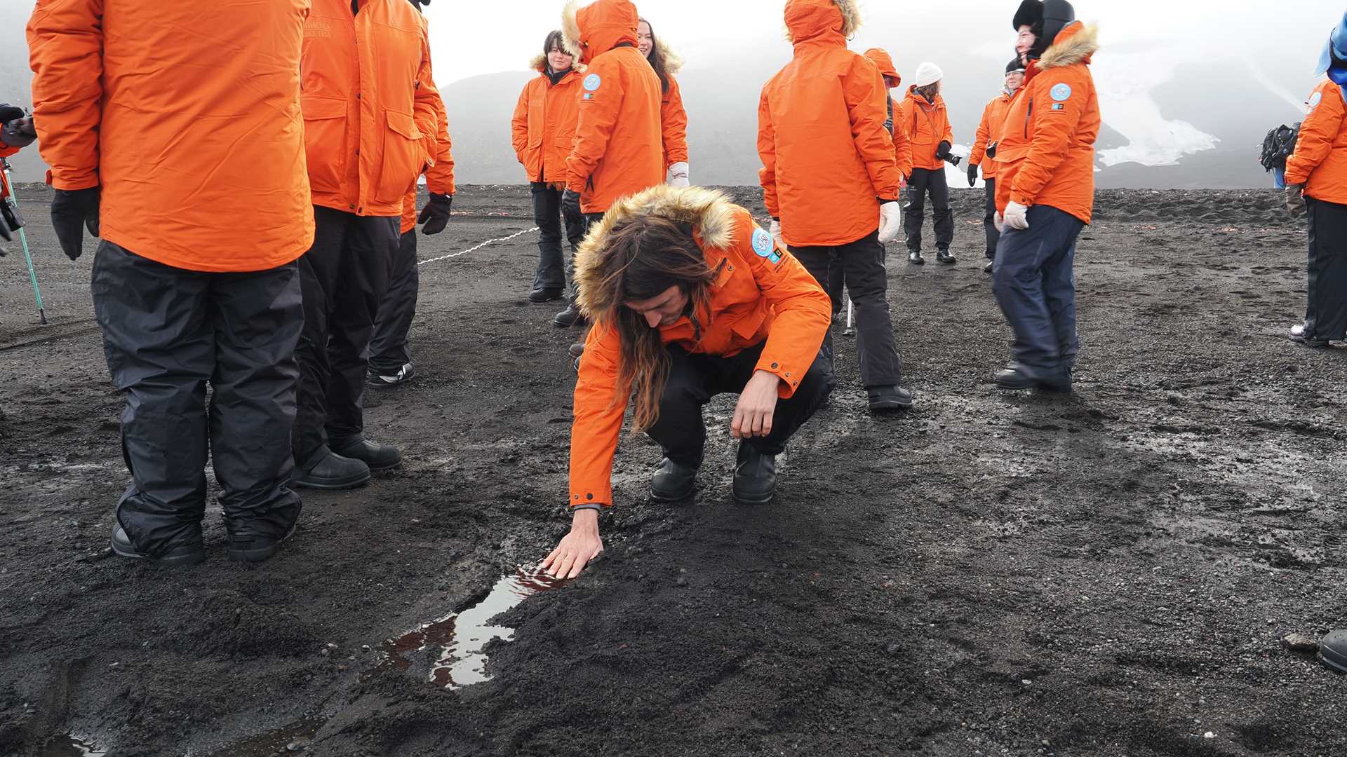 We passed into Pendulum Cove and went ashore to walk on the beach and hike to Presidente Pedro Aquirre Cerda Station, a Chilean research station destroyed by volcanic eruption in 1967. For those who questioned whether the volcano is still active, a dip of the hand into the warm waters along the beach was all the confirmation they needed.
