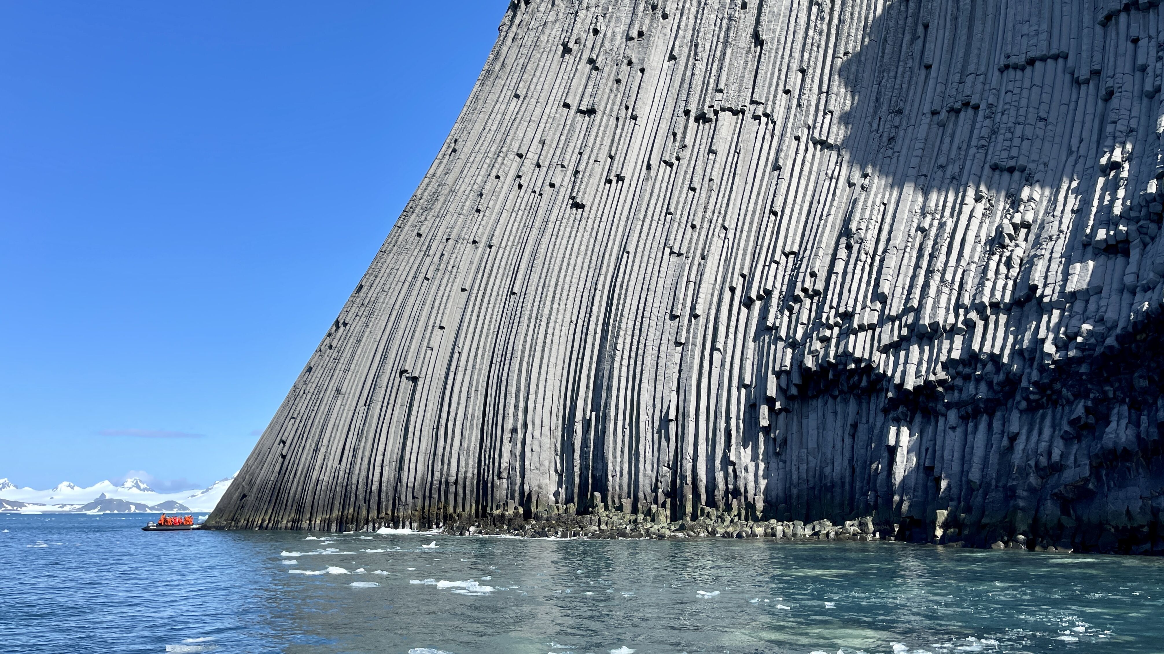 Later, we visited Edinburgh Hill. This is a very conspicuous volcanic knob by the entrance of Moon Bay on the east part of Livingston Island. Majestic basalt columns form this volcanic core, making it a unique geological feature that our guest could enjoy. Conditions for the Zodiac cruise were perfect: no wind, sunny, and a peaceful evening. With this perfect last visit, we started sailing north. Next stop, Cape Horn!