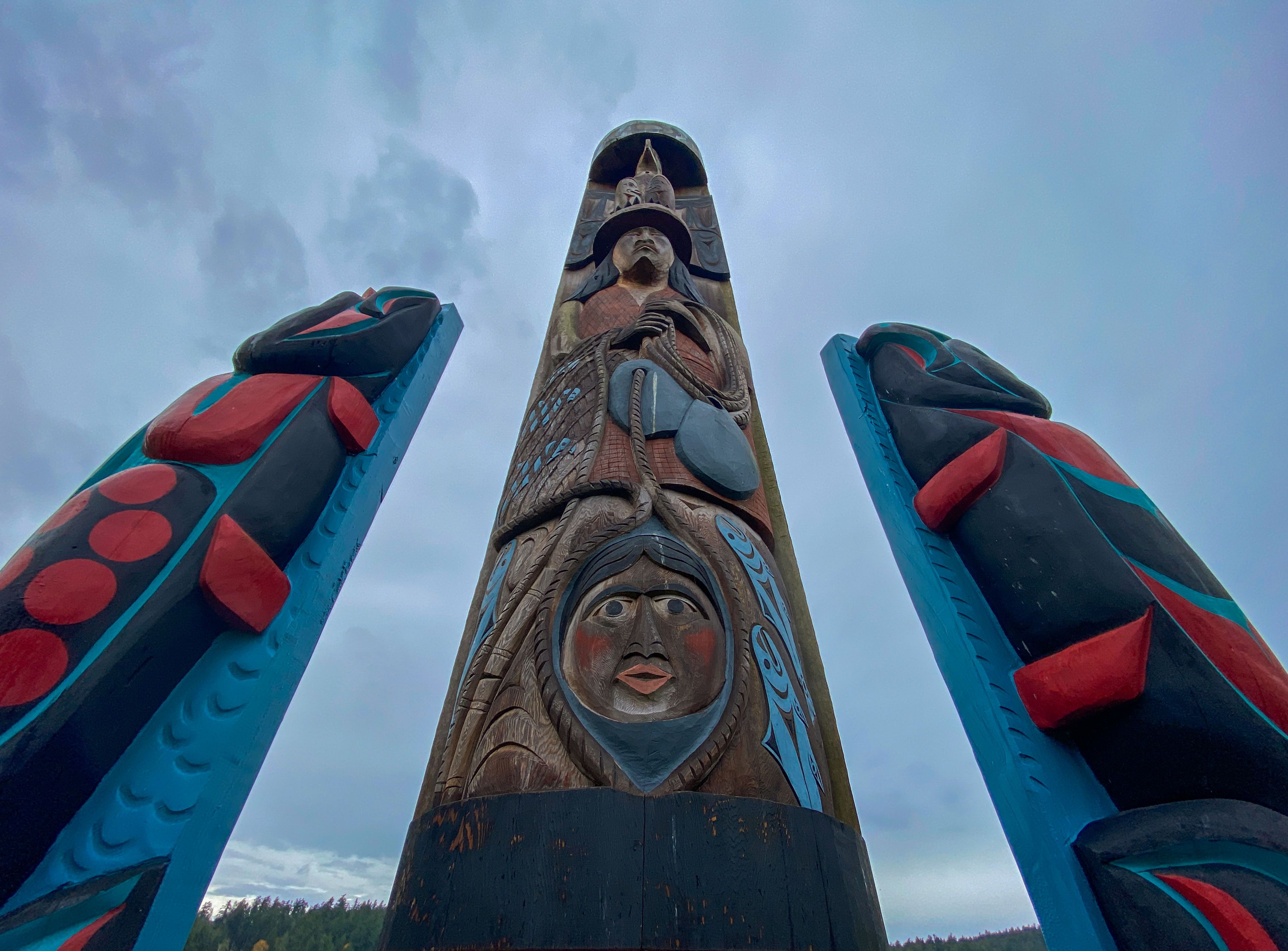 Today we woke to a quintessential Pacific Northwest day. As the light rain came down, we loaded our Zodiacs to head out and explore English Camp on the San Juan Islands. The fall foliage colors were exploding as we landed and headed ashore. We were blessed to have our expert Naturalist Sharon Grainger explain the significance of the beautiful ornate totem poles on the shoreline. Carved by the Salish Coast people, these poles honor the tradition of reef netting in the area. Contrasted by the modern English Camp settlement structures, these poles represent and honor those that called this place home for over 10,000 years before ships sailed here. Turning to the camp we were greeted with 200-year-old big leaf maple trees in a brilliant display of a variety of fall colors. We hiked though these old growth forests, and with leaves crushing underfoot, we explored countless mushroom and lichen. Some adventurous souls climbed to the mountaintop and were met with a sweeping view of the island chain we have been sailing through. Back on ship our remarkable galley team had a steaming lunch prepared to welcome back those