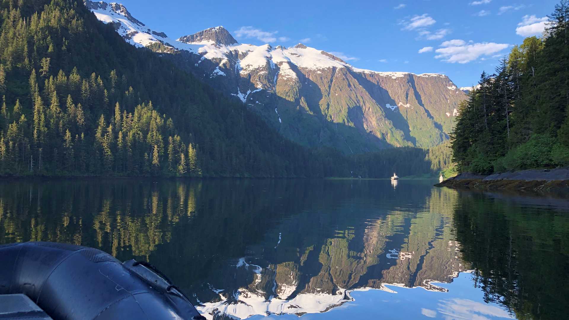 Our expedition leader, Shawn Lucas, had an idea to visit a strikingly beautiful place that is only accessible when wind and tides oblige. Today they did, and the sun came out as well, giving us a remarkable day in Deep Cove and Patterson Cove. Shawn encouraged the entire group to awake early — so the staff was on shore scouting out the trails by 6:10 a.m., and leading guests by 7:00 a.m. This gave us pond-smooth waters for reflection photographs, and calm Zodiac tours to explore hidden coves. The plan allowed us to spend hours finding and observing dozens of rounds of bubble-net feeding by humpback whales. Planning, weather, sunshine, and animal life, all combined for a magical day.