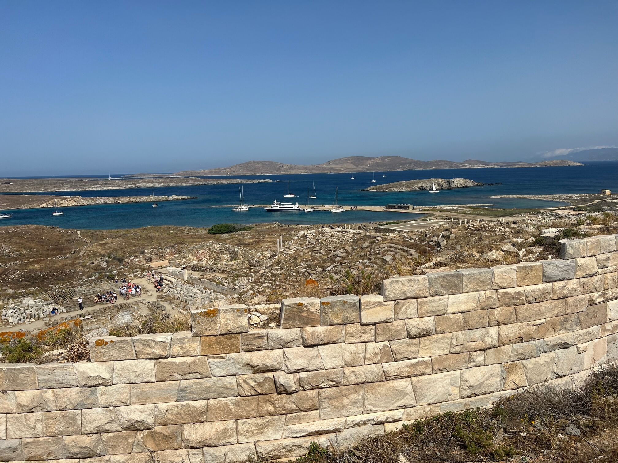 Our groups made their ways through the Agora of the Italians, and we finished our tour near the site’s museum, now under reconstruction. After the tour, several guests accompanied staff in climbing to the island’s highest point, Mount Kythnos, for expansive views of the neighboring Cycladic Islands. Other guests continued to explore the site on their own. By 1130 hours, the last of our guests departed Delos by Zodiac just as a crowd of new visitors was arriving to the island.