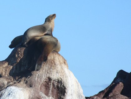A Zodiac was sent to investigate the possibility of a landing, only to find that any attempted landing would cause too much disturbance to the rookery, especially as the birds were sitting on eggs or young chicks.