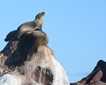 So, Zodiac tours became the order of the morning, taking the guests on trips amongst the icebergs. There were many Adélie penguins swimming and leaping on and off the ice. Tiny Wilson’s petrels could be seen flitting here and there. Their large cousins, the giant petrels were resting on the flows, as the calm conditions were not so suitable for flying. Only one seal was in evidence all morning—a Weddel seal, lying motionless on a large sea-ice flow, which was further out in the bay.