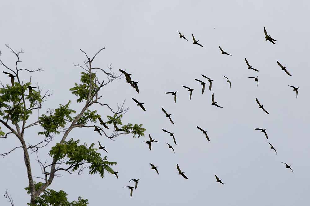 Off the southeastern tip of Santiago Island lies Sombrero Chino, or Chinese Hat. The beauty of this location is complemented by its surrounding turquoise water and wildlife. We had an early start to the day, and many guests chose to have a pre-breakfast stretch and swim on the beach of Chinese Hat. Later, after breakfast we set out on Zodiacs to look for the iconic bird of the Galapagos, the Galapagos penguin. As we continued our expedition, we snorkeled along the coast of Santiago, just across Chinese Hat Island. The Galapagos underwater world is nutrient rich, which allows for an unexpected grouping of animals from different worlds. We spotted various species of fish, sharks, and rays, all sharing the same area with penguins. We loved it. Before reaching our final destination, our captain slowly maneuvered the ship to an Island with a crater containing brackish water and a thriving flamingo community. We then visited Sullivan Bay on Santiago Island where an eruption in the late 1800s added new lava, making the bay grow larger. Lava flows have created the most interesting shapes found in every direction we looked. Today, plants and animals have begun colonizing the area. The ambiance of the island, and the exploration of the day has made us feel as if we are in the very genesis of the Galapagos. &We had a great day, in great places.