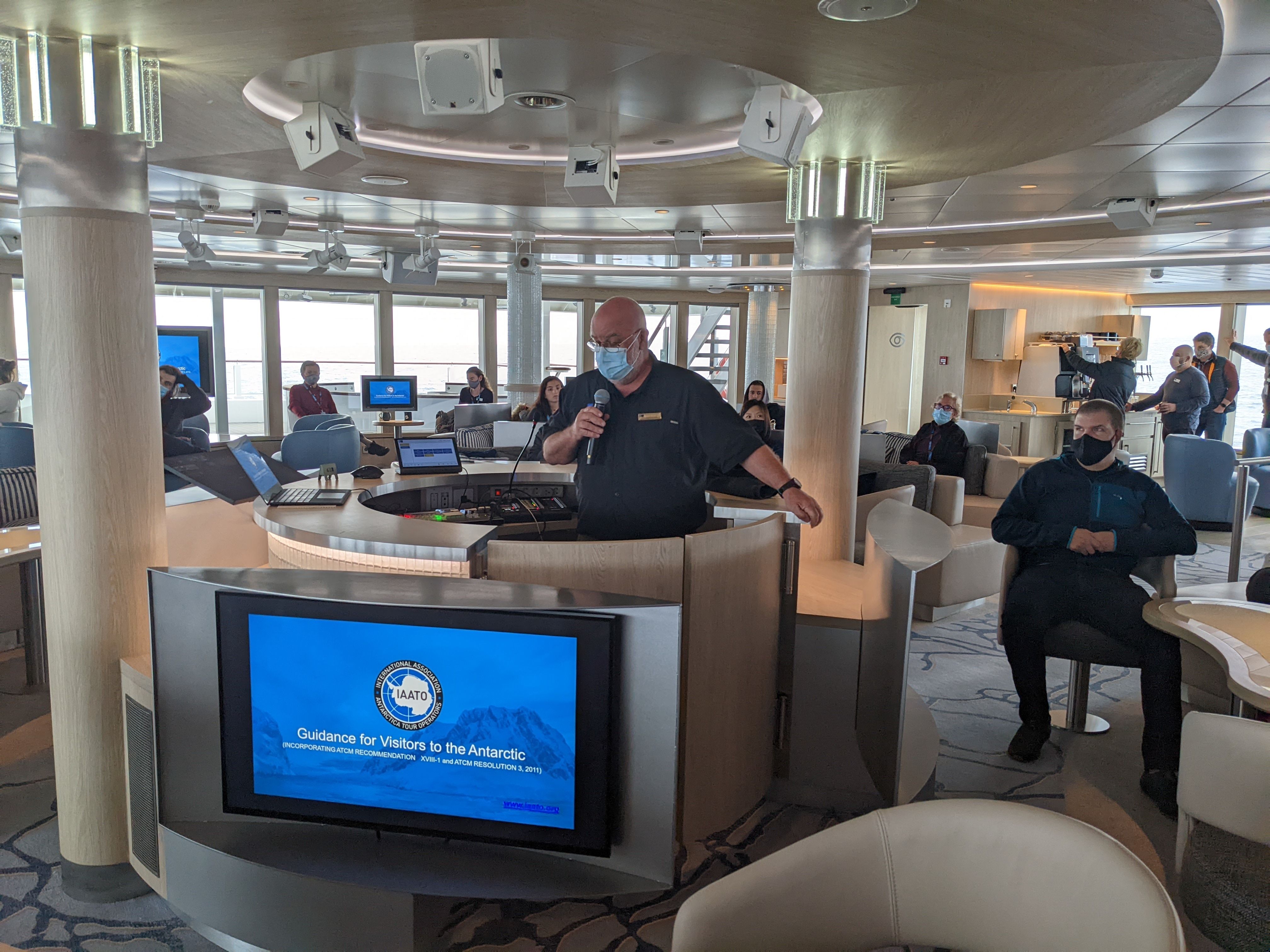 We officially begin our epic voyage to Antarctica today. We awoke to favorable seas, somewhere between the Drake Lake and the Drake Shake. Staff informed, treated and decontaminated us in preparation for our arrival. IAATO is the organization that establishes rules and regulations for interactions with the white continent. We examined our gear for any possible seed or disease vectors carried from elsewhere. Boots, outerwear, packs, tripods and hiking poles all underwent processes to ensure sufficient sterilization. We spent the rest of the day watching the seas mellow and the sky brighten, very good omens indeed.