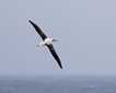 Albatrosses dwarf giant petrels. At a distance, the black-browed albatross looks like a standard black-backed gull. As this animal flies closer to the ship, the 8-foot wingspan begins to be recognized for the length that it is.