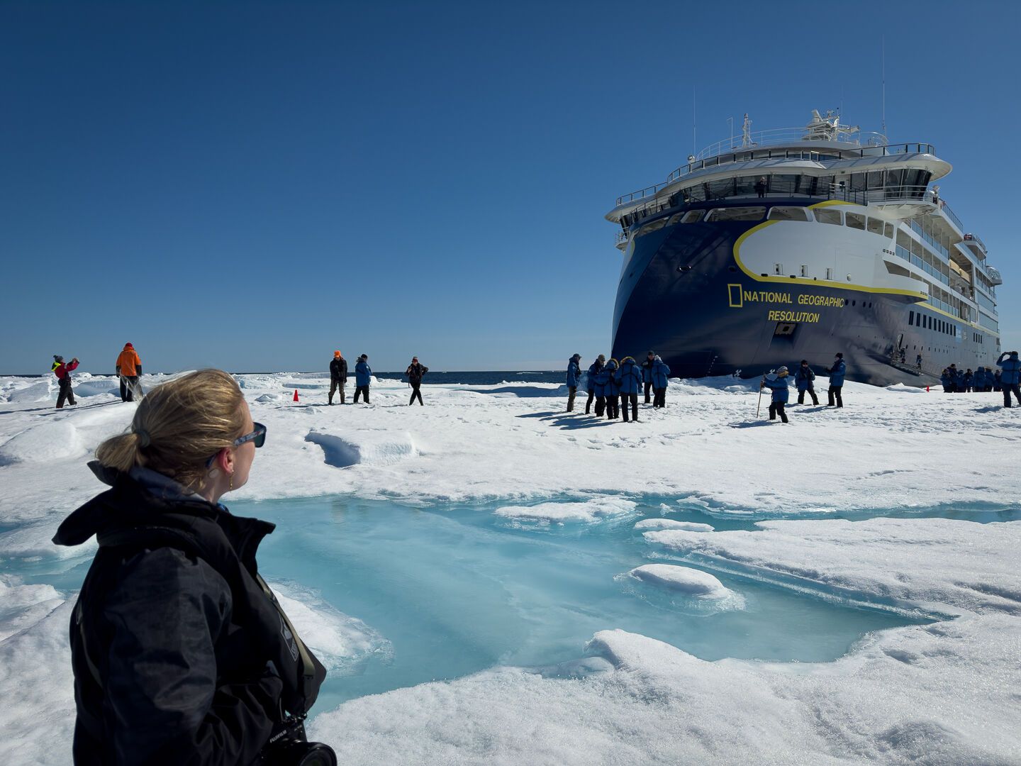 As we approached the coast, we attended an extremely interesting presentation by Naturalist Steve Zeff about Andree’s attempt to reach the North Pole. Right at the very end of it, our bridge team found a perfect area full of fast ice, good enough to enter with the ship and make our first landing in the frozen sea near Kap Hodgson.