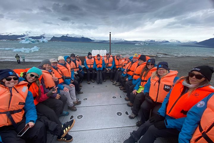 After a late night yesterday at the Arctic Circle on Grimsey, we woke this morning to part sun, part cloud, gentle breezes, and calm seas. Since leaving Grimsey, we travelled to the northeast corner of Iceland and then to the south along Iceland’s east coast. Guests enjoyed a bit of a sleep-in this morning, a hearty breakfast, and presentations by Birna Imsland, our cultural specialist, on Icelandic Sweaters: Armor of the North, and Dana Johnston, our geology specialist, on Glaciers and Glacial Landforms.