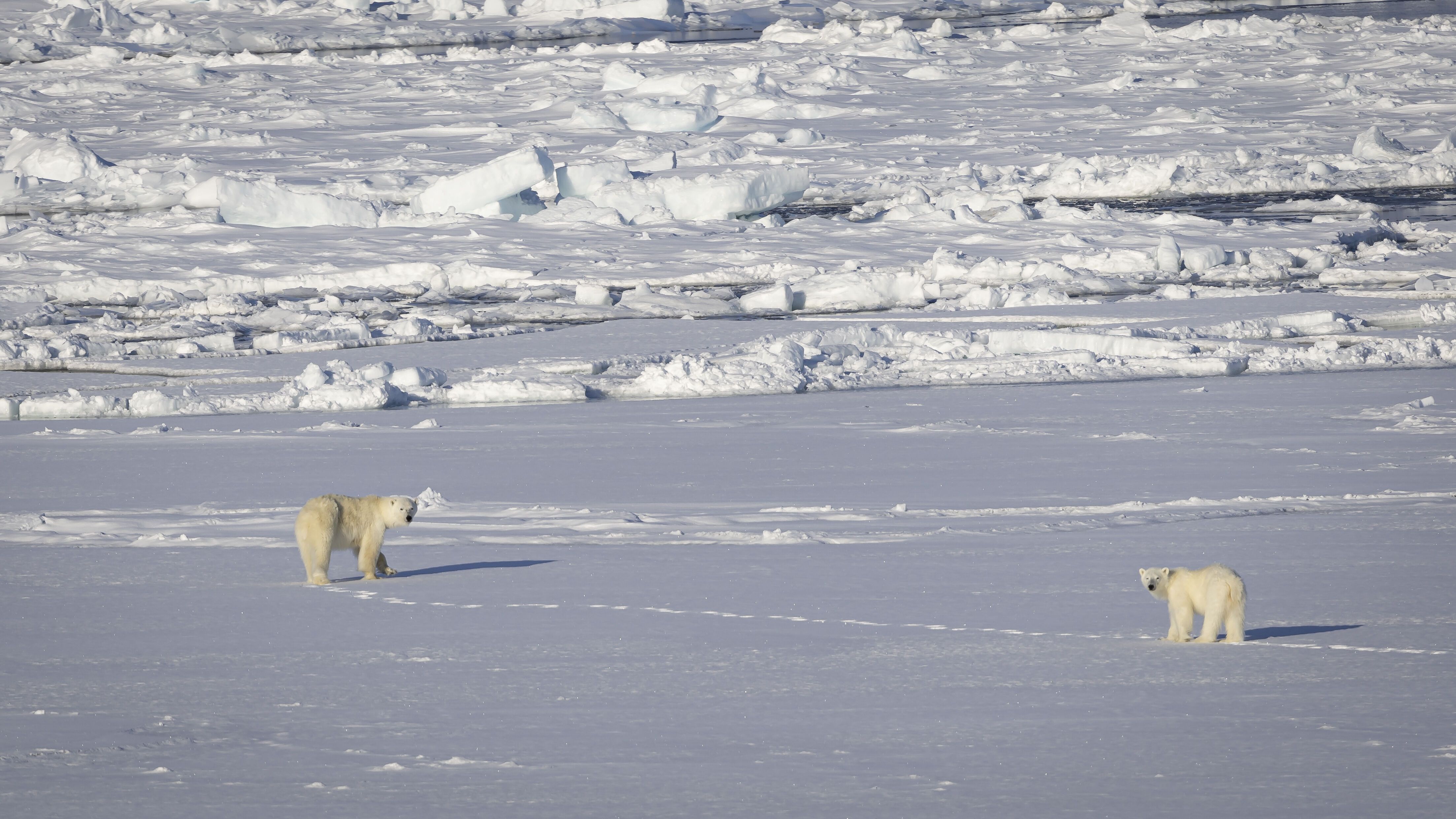 This day was beyond amazing. We ventured north of Svalbard in the hope of polar bear and beautiful ice sightings, and both were delivered to us. The call for our first bear of the day came at 06.00, a beautiful female with a recent kill. But just one hour later we spotted a second bear, also with a recent kill. The bears kept appearing and soon, we were yet again called to the bridge to watch a young and curios bear check us out. We continued, and after passing 81 degrees north it was time for an ice walk on an ice floe. Winds were still and just as we were wrapping up, the snow started to gently fall. It was absolutely fantastic! The conditions were perfect to continue, and we passed 82 degrees. Captain Martin took us even further north before the ice stopped us, yet we set a new record for Lindblad Expeditions by taking us to 82 degrees and 15 minutes. This will definitely be a day to remember.