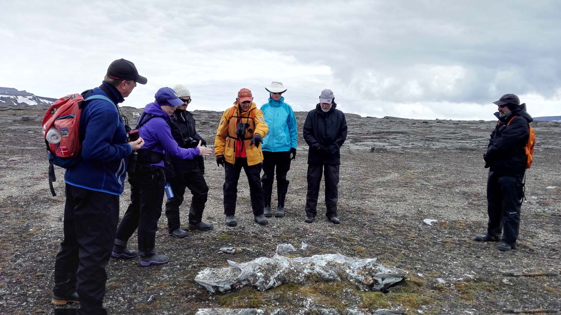 After last night’s polar bear excitement at 79°42ˈN, the National Geographic Explorer headed back South to 78°12ˈN so that we could explore Svalbard’s third and fourth largest islands: Barentsøya and Edgeøya. We went on a beautiful walk and saw stunning wildlife including walrus, Svalbard reindeer, Arctic fox, Svalbard ptarmigan, Arctic skua, king eider and pink-footed geese.