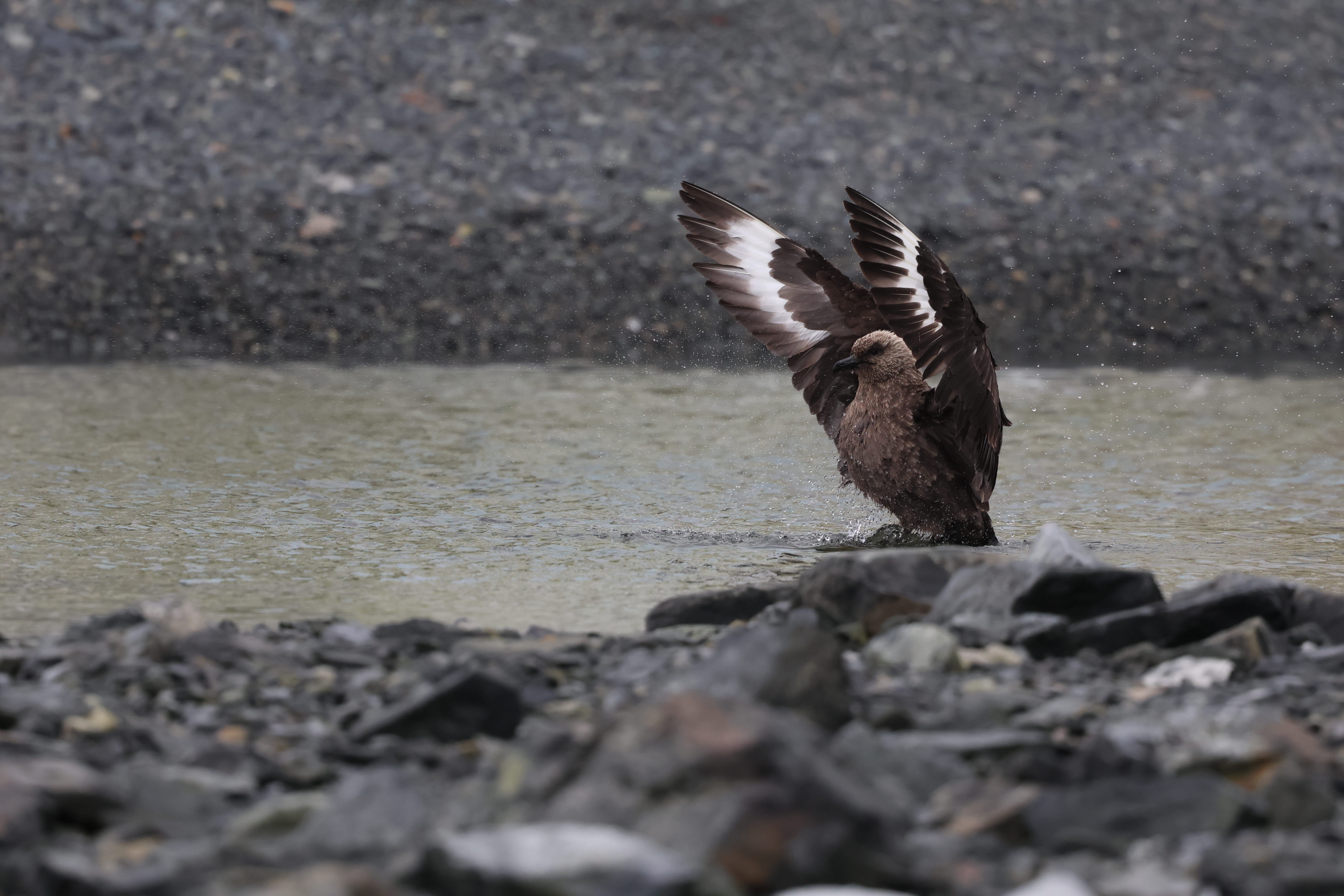 As we reached Point Wild today, the high cliffs of Pardo Ridge loomed out of a haze of snow and fog. Shivering in our Zodiacs, we launched into a long, languorous swell filled with chunks of ice. Viewing the campsite from the water that surged along the rock outcrops, many were moved to tears. To think that anyone could survive here today would be foolhardy in the extreme. That the 22 survived, albeit with the loss of a couple of toes, is one of the greatest human achievements in polar history.