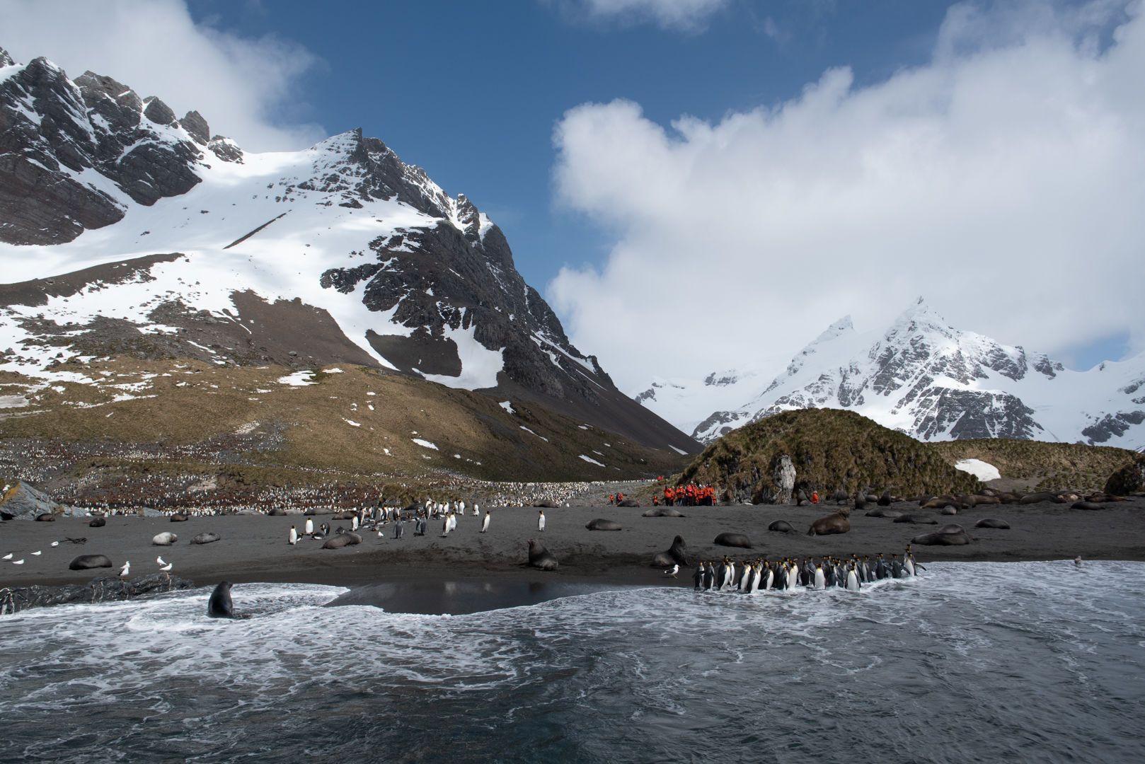 Our third morning at sea since leaving the Falkland Islands brought sightings of many seabirds and our first look at South Georgia. We arrived and anchored in the protected cove of Elsehul, and from there, we spent the afternoon hiking and Zodiac cruising. It was a wonderful first day in South Georgia. We saw our first southern elephant seals, Antarctic fur seals, and three different species of penguins! The weather was gray and cool—not unusual for South Georgia—but the animals and beautiful landscape made it all worth it. After dinner, we took an impromptu Zodiac cruise to Welcome Island; it was the first time National Geographic Explorer and crew have visited.