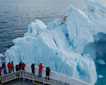 Travelling up the arm, we saw seawater turn from dark green to a beautiful jade color, sure sign that a tidewater glacier was near. Bergs appeared, and some here were huge. And at last we spied the Dawes Glacier. We hopped into our small rubber boats to get an intimate view of our surroundings. From small boats, the icebergs were all the more impressive, and many were large enough to resemble miniature mountain ranges, with saw-toothed edges, or were broad enough so that, fitted with crampons, one might play a tolerable tennis game. Other bergs were smaller and were formed as to resemble swans, whales or dragons. Seals lay about on some of the bergs. They come here to give birth to their pups, and though drivers did all we could to leave them undisturbed, we did manage to get a few good looks at these whiskered sausages.