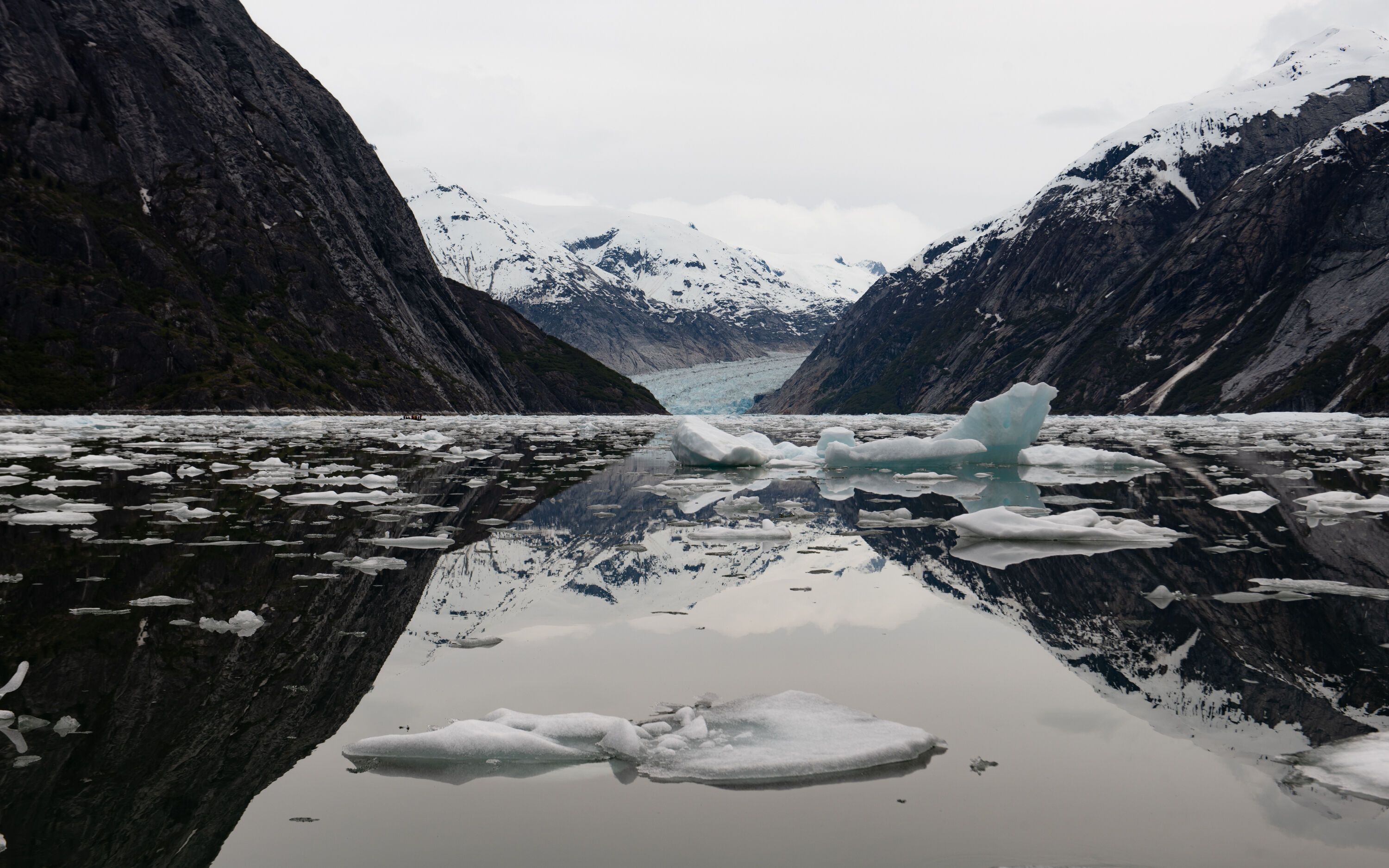 It’s not every day that a trip into the depths of a fjord, situated within a temperate rainforest, is dry and warm. No more than a few drops of rain fell on us today as we plied the ice-choked waters of Tracy Arm-Fords Terror Wilderness Area in our pursuit of Dawes Glacier. Dawes Glacier is the tidewater juggernaut that scoured and sculpted the landscape we zigzagged our way down this morning before taking to our fleet of Zodiacs for a day on the water. The day included not only ice tours but about 50 splashes (followed by screams) as over half our ship plunged into the glacially infused water.