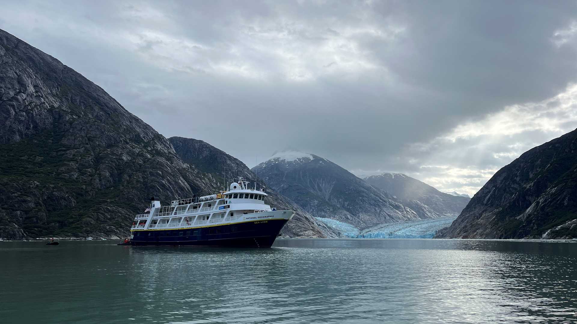 Good morning from Southeast Alaska! Today is the last full day of our journey and it began perfectly. We woke up en route to Dawes Glacier. Once our bridge team found the perfect spot, Zodiacs were lowered, and adventure began! All our guests were taken by Zodiac to Dawes Glacier; as we approached, we stopped at waterfalls and icebergs to glaze upon their glory.