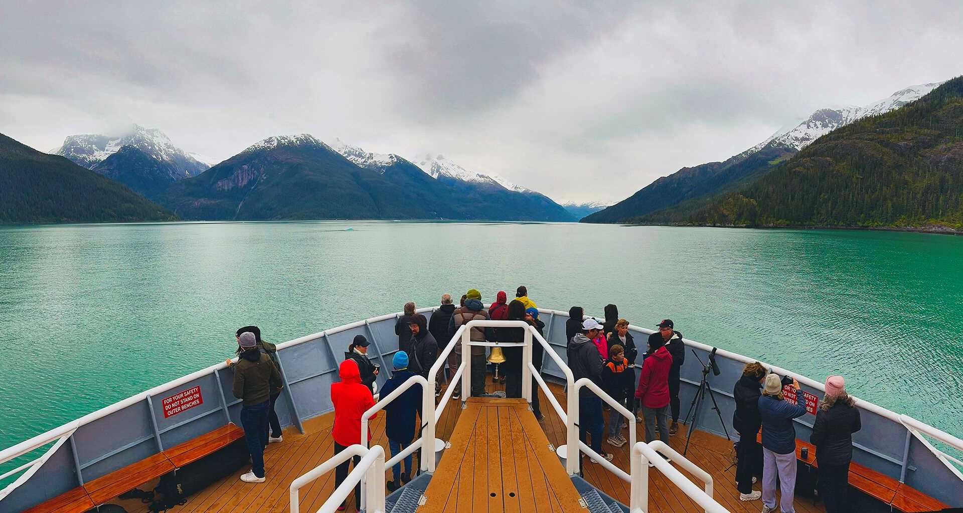 While cruising out of Endicott Arm this afternoon, we spent time at the ship’s bow searching for wildlife and were rewarded with viewings of humpback whales, bears, and bald eagles. Finally in the evening, we gathered for a National Geographic-Lindblad Expeditions tradition: a daily recap of the day’s highlights presented by our naturalists. Finally, we enjoyed a great dinner, sharing stories about our day’s adventures.