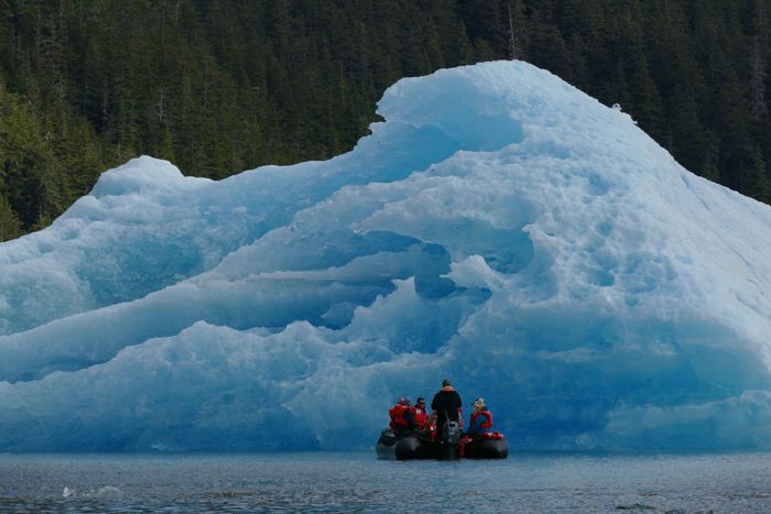 This morning, our luck continued when we found two bull killer whales leaving Endicott Arm along the shoreline. Weaving gracefully through the ice, we were able to take our watercraft up the fjord to see Dawes glacier firsthand. Massive hunks of ice swirled and bobbed along the way, with the popping sounds of tiny air bubbles escaping the ice. We wondered at the size of the icy expanse in front of us. We talked about glaciology and felt very peaceful in the presence of unspeakable beauty. Time spent in true, unfiltered wilderness is a truly precious experience.