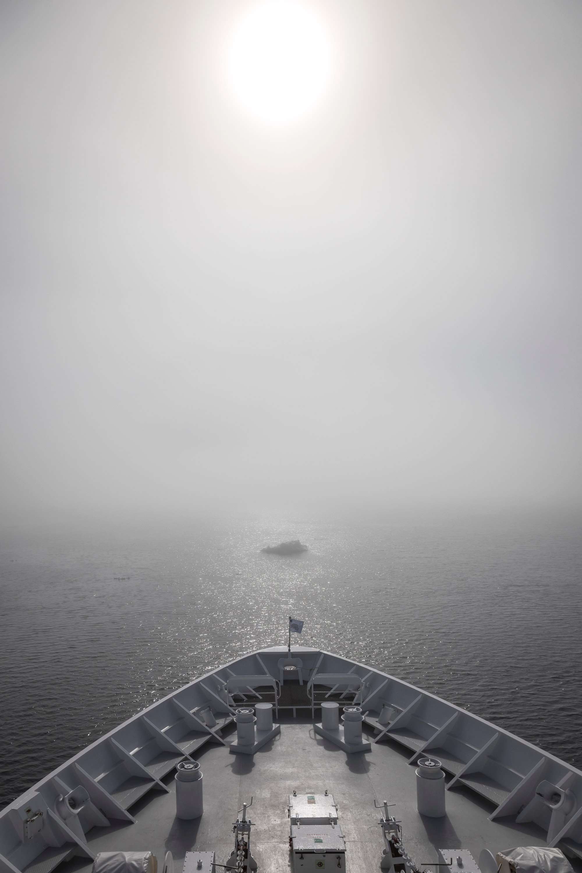 On the last full day of our voyage, we woke in Endicott Arm near the Dawes Glacier. We spent the morning enjoying Zodiac tours to the face of Dawes Glacier and watched multiple calving events. We were also able to spot several harbor seals, waterfalls, and a couple harbor porpoises on the way. After lunch we had the opportunity to participate in a polar plunge. Forty people decided to brave the frigid water for a short swim. Those of us not eager to jump into glacier water were able to watch from the bow. After the polar plunge, we warmed up on board as we started transiting towards Juneau. On the way, we stopped at a beautiful waterfall to once again admire the amazing natural beauty of Alaska. During our farewell recap, we were treated to a quick visit by a humpback whale. We ended our day with a slideshow made up of our favorite photos and memories of an amazing week on board National Geographic Quest .