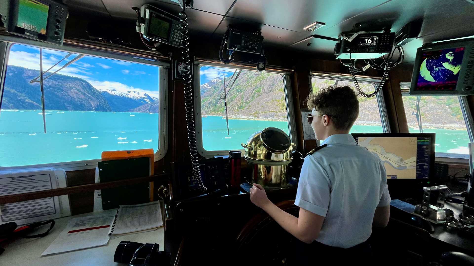 Today National Geographic Sea Bird and its crew came out swinging, kicking off our expedition by cruising into Endicott Arm. After breakfast, we launched our Zodiac fleet and set out for the Dawes Glacier face. As we weaved in and out of brash ice, nosed into waterfalls, and sailed deep into the Endicott Arm, we finally arrived at the brilliant blue sapphire face of the glacier. We inched closer and closer, eyes glued to the mile-wide frozen river, when suddenly, a massive serac calved off the face in what felt like slow motion. A thunderous clap rang out as the falling crystals broke and hit the water below. It was an emotional rush for all, and a treat to experience such a mighty force of nature. As we wrapped up our Zodiac tours and began cruising back towards Holcomb Bay, we soon met a humpbacked friend as well as a few Steller sea lions. We even got a wonderful view of Sum Dum Glacier as we cruised by. The day concluded with feelings of wonder and gratitude from today’s excursions and spirits are full of anticipation for what tomorrow holds.