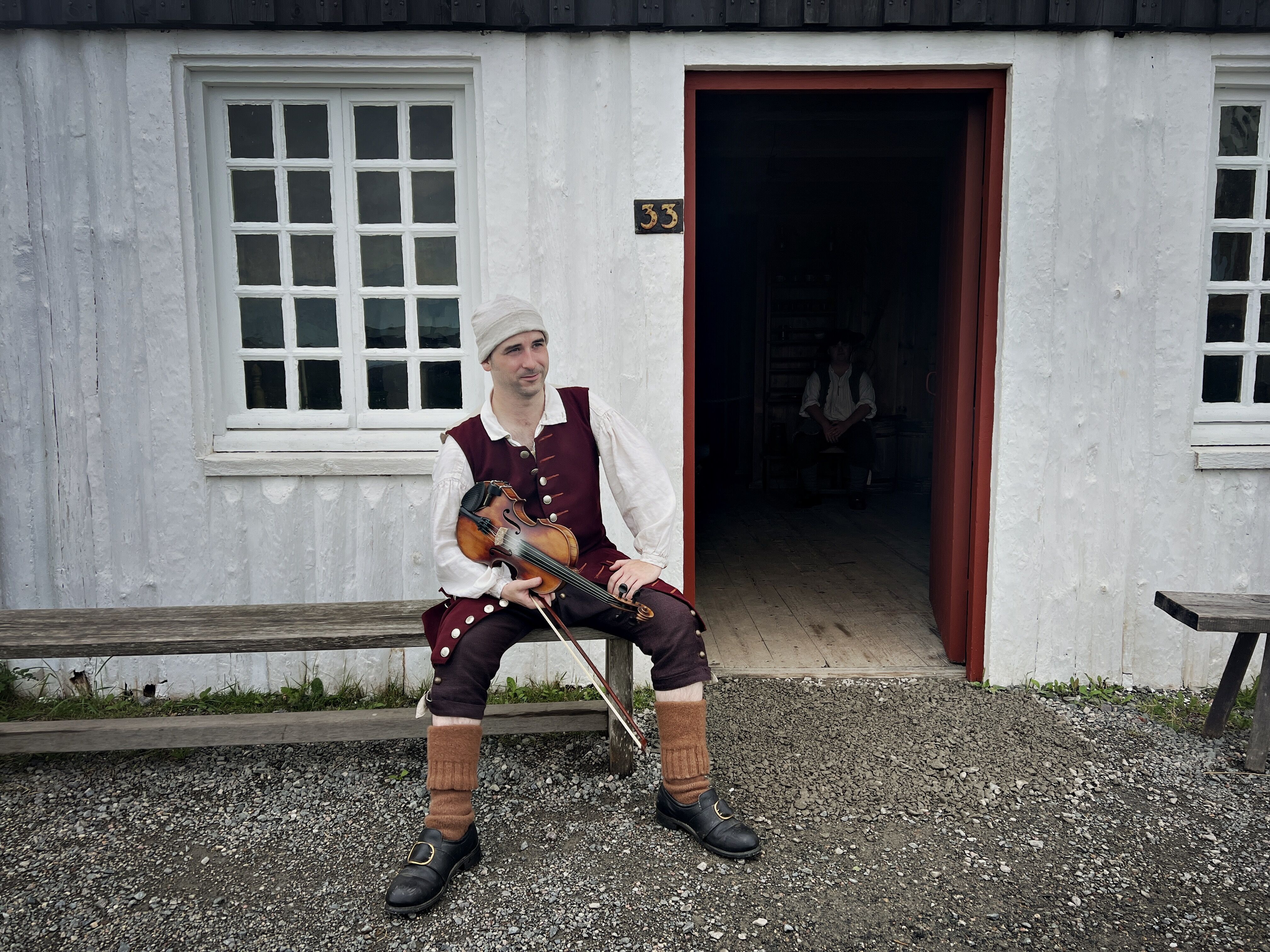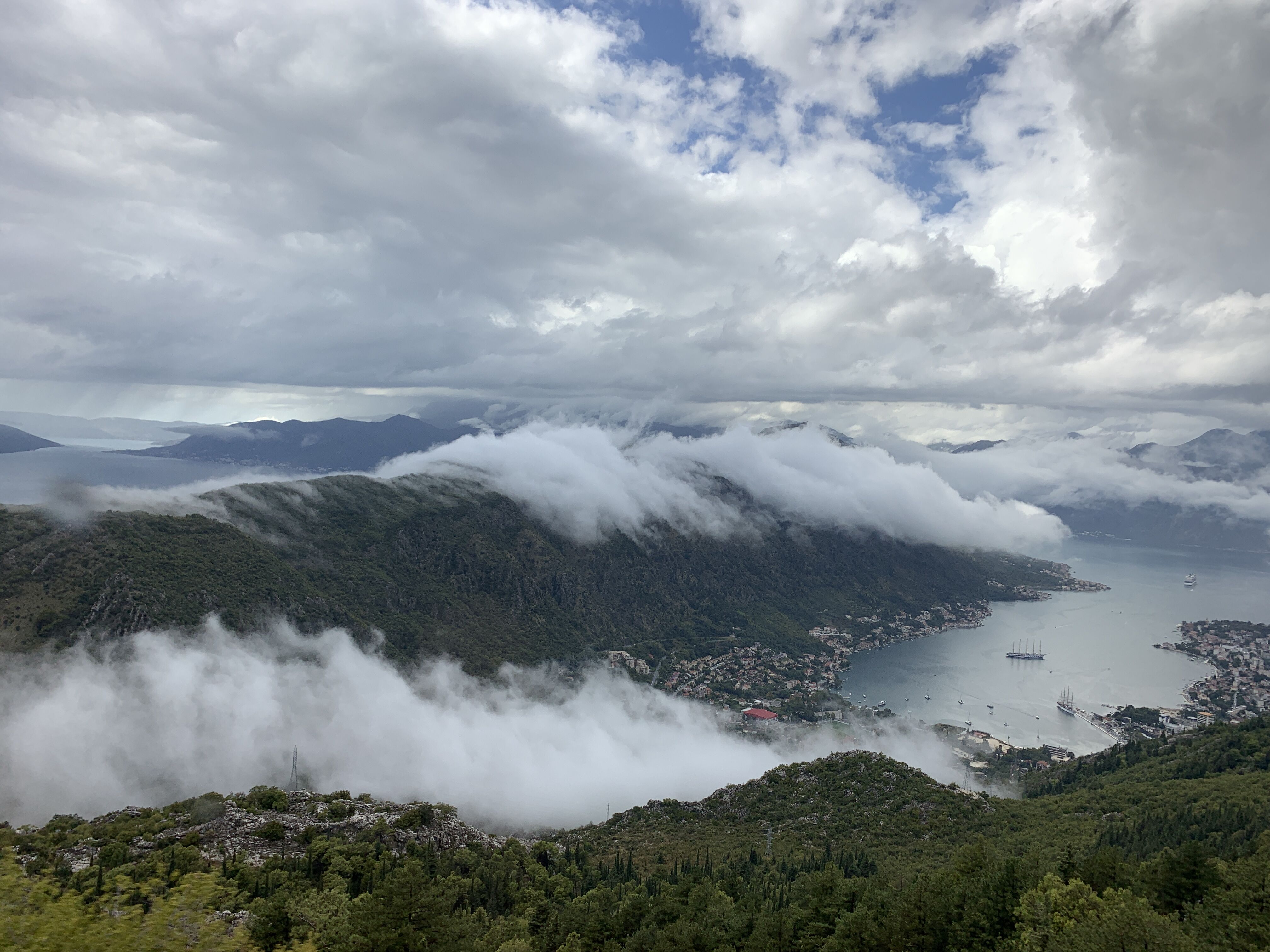 As we slowly cruised up the fiord this morning, we found several mountain goats lounging high on the rocks. A mama goat stood and stretched her legs, her kid resting beside her.