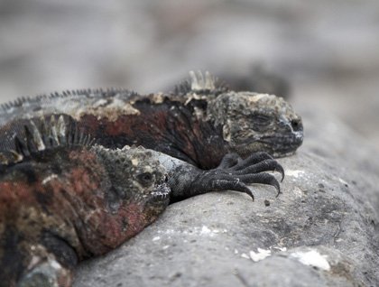 Here at Punta Suarez we disembarked for a long walk in order to explore the colonies of seabirds. As we landed we were surrounded by a group of sea lions. Marine iguanas are iconic animals on this island, and we many groups of them all over the rocky shore.