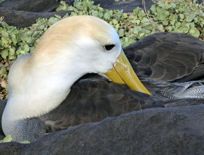 As we hiked along old pahoehoe lava, we found waved albatrosses, some with chicks, some with eggs and some courting. It was magnificent to be able to get this close to these wise, beautiful birds. We were also extremely happy to find a few pairs of blue-footed boobies courting and making nests.