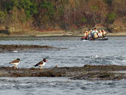 As we awakened at Española Island we were shrouded in mist with turquoise blue water inviting us to enter into its realm. After eating a hearty breakfast we learned about our water activities for the day and we tried on wetsuits and fins, then continued our adventure. Deep water snorkelers headed to Gardner, a small satellite island, and entered into another world. Immediately we encountered large schools of razor surgeon fish foraging over the rocky reef, with king angelfish moving in and out of the school. White salema’s, an endemic species, swirled in large schools around the snorkelers, with yellow tailed damsel fish maintaining their algae gardens on the small boulders. As we headed to deeper water along a wall, a kaleidoscope of colors brightened this environment in the form of bright orange cup coral, gorgonian fan corals, and green sea urchins. A spiny red lobster poked its head out of a crevice in the basalt lava flow that had submerged into the ocean. We were then out of the water and traveling over it as we headed to our afternoon destination of Punta Suarez.