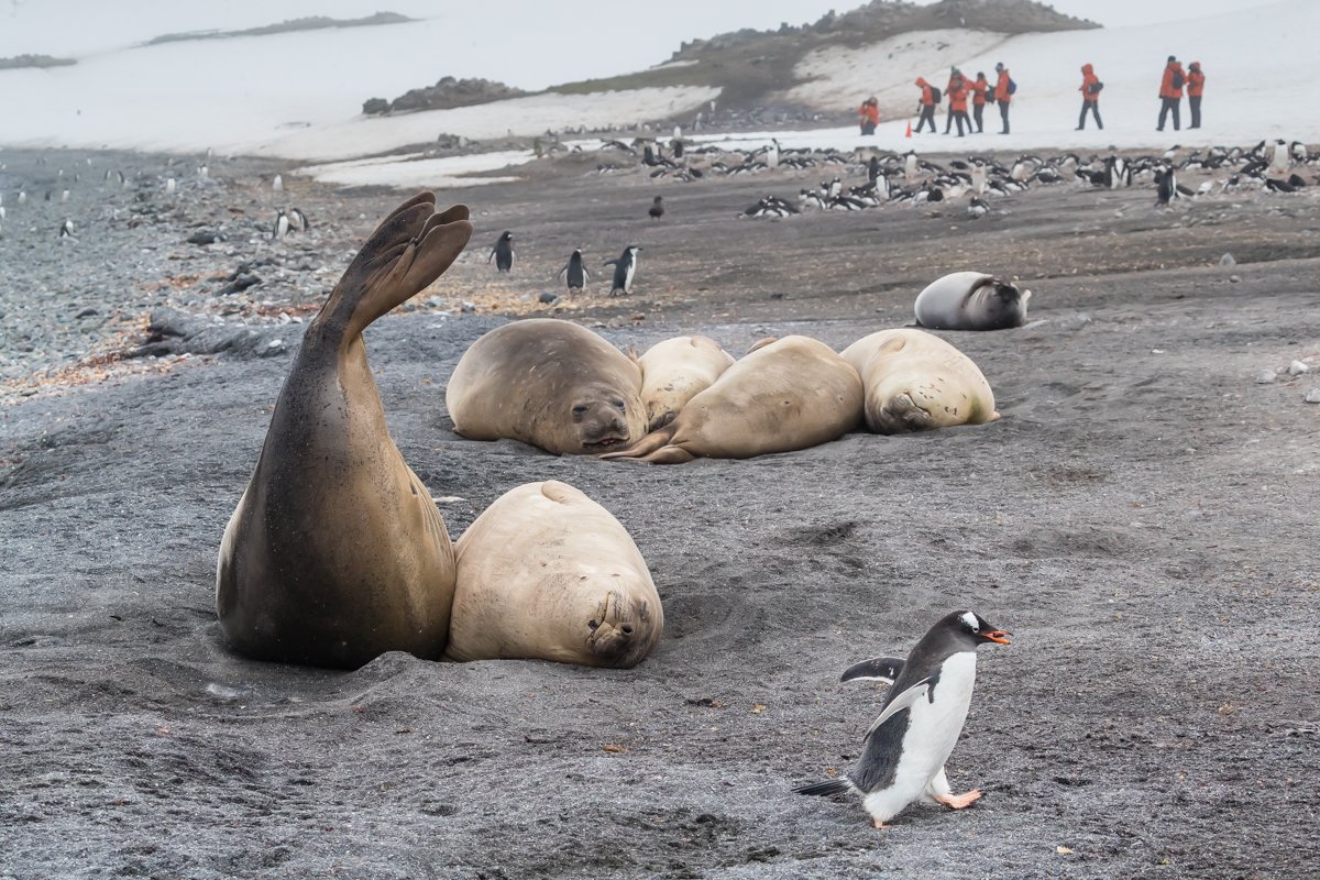 Our Captain Patricio navigates National Geographic Endeavour towards Punta Suarez along the western coast of Española Island. We encounter a dense population of various species, some of which cover the path that we walk upon. This area has one of a few waved albatross colonies found on the island. The waved albatross is not only endemic to Galapagos, it is unique also to Española. This pelagic species leaves the islands towards the end of the year, following the Humboldt Current as it seasonally recedes towards the west coast of South America. As we head into the cool season and this current returns, the albatross make their first landfall here. An elaborate mating display ensues while they search for their mates, and being faithful to the pair, they try to propagate the species year after year, possibly living up to 60 – 70 years. As we are close to the end of the season, we find fledglings almost ready to continue this circle of life, learning the pattern that sustains this species. Among Nazca boobies that hold vigilance over the steeps cliffs of the South, and red-billed tropic birds making high-pitched screeches overhead, we can see that this area has a high productivity in the surrounding seas. Galapagos hawks watch over a field of possible prey as we return to our landing site. As a crimson sun dips into the ether and the last Galapagos shearwaters return to the coastal area, we may have started to understand in the smallest way the uniqueness of this world among itself.