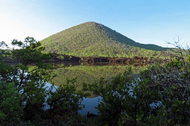 Relatively small and low compared to neighboring Santa Cruz, North Seymour is located to the north of Baltra. The island is dry with predominantly low shrubs, like prickly pear cacti. The incense trees are bare during the dry season. Seabirds like frigatebirds and blue-footed boobies nest on the island, and sea lions rest on the sand when they are not fishing. Land and marine iguanas also live here. Rabida is in the middle of the archipelago and has a striking red sand beach. We observed a small colony of sea lions of all ages resting or nursing. Behind the beach, American flamingos nest in a brackish lagoon. This island is full of contrasts and wildlife that we enjoyed observing during this day of expedition.