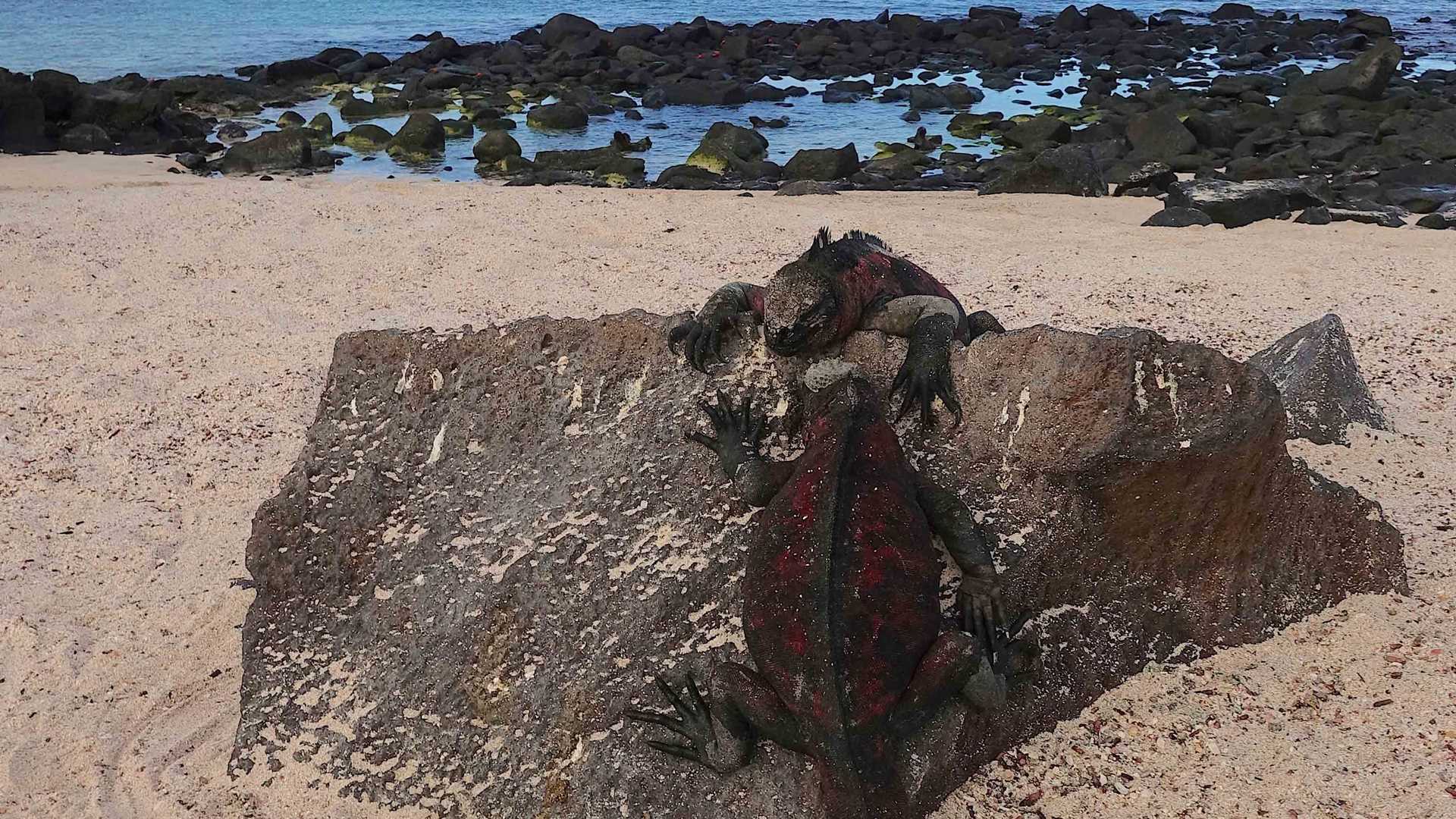 Our first complete day of exploration leaves us with a sense of awe at Española Island. One of our older islands, it appears to be arid and devoid of life at a distance, however, this is far from the truth. The surrounding ocean is highly productive this time of year, allowing for an abundance of life on the island. Galapagos sea lions swim among us as we snorkel along the coast in the morning. On the fine white sand Gardner Bay beach, we have young Galapagos hawks soaring overhead with Española mockingbird’s fliting between us. We leave the turquoise waters behind as we navigate into the afternoon and Punta Suarez. A late afternoon walk allows us to encounter Nazca boobies, red-billed tropicbirds, marine iguanas, sea lions, blue-footed boobies, and the majestic waved albatross. The late glow of the sunset falls upon an albatross feeding its young, with the avian species returning to their nesting areas, a wonderful end to this day.