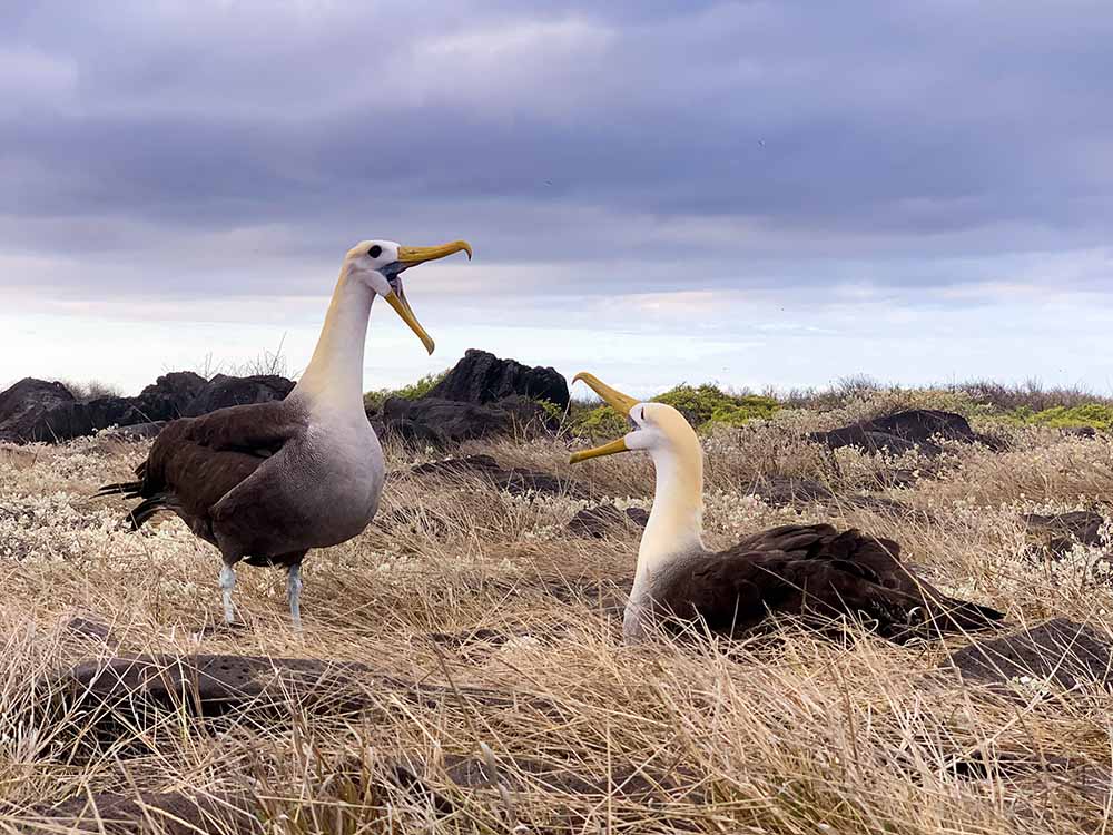 Española is also home to the largest bird in the region, the waved albatross. Every year, many thousands of individuals nest across the island. Today, while visiting one albatross colony, we witnessed the birth of a baby albatross, possibly the first this season! What a pleasure to see this tiny creature just beginning to move underneath its parent on a soft nest.