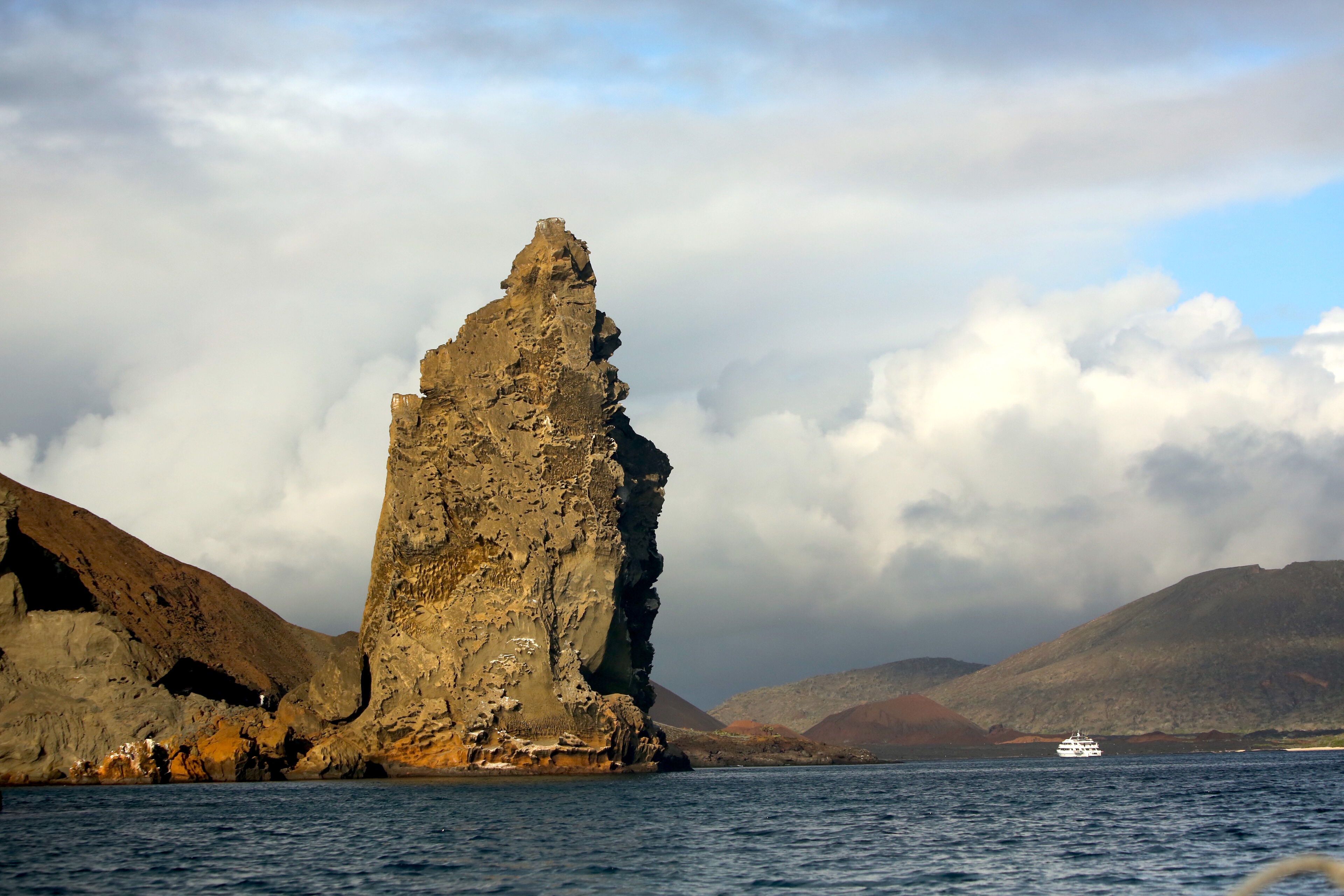 After a delicious lunch on board, we headed to Punta Suarez, where we hiked along the rocky shore and observed many endemic species, such as the waved albatross, Española mockingbird, marine iguana, and Española lava lizard. We were especially lucky to witness the courtship dance of the waved albatross, which was very impressive and amusing. They clacked their beaks, bowed their heads, and bellowed a mating call in a synchronized manner. We also admired the local blowhole, where seawater is forced through a fissure, creating a spectacular spray. We ended our day as light rain fell upon this “world unto itself.”