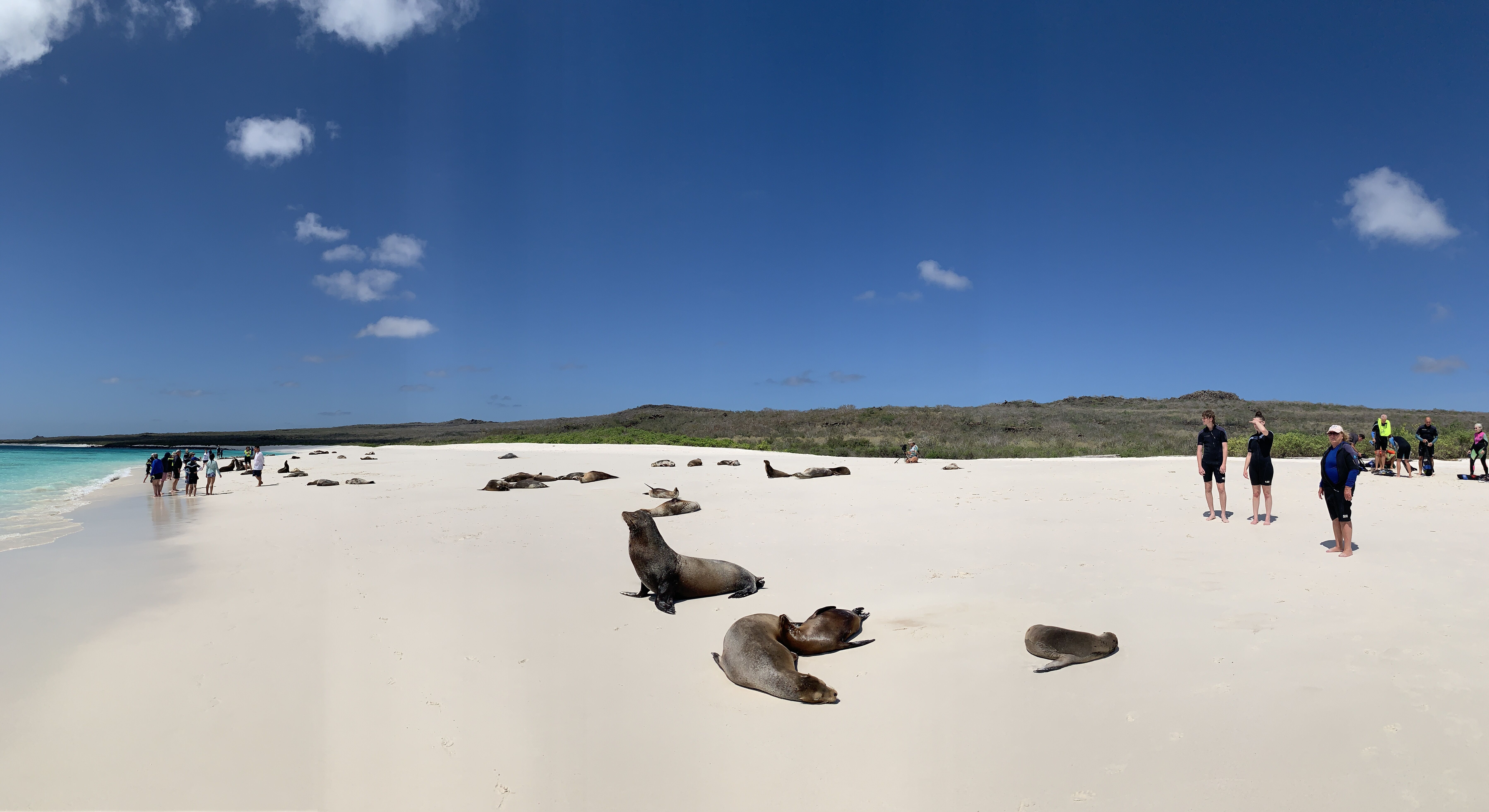 We started the day with excitement as we landed on the beautiful, pristine coast of Isla Genovesa - a true birder’s dream. Along the sandy beaches and steep cliffs of Darwin Bay, we were surrounded by an incredible array of birdlife. Frigatebirds soared closely overhead with their red pouches on full display, while Nazca and blue-footed boobies nested along the rocky ledges. Swallow-tailed gulls called out as we walked past. In the distance, we saw the stoic and elusive short-eared owl. The island was alive with color, sound, and constant movement. Between our excursions to Isla Genovesa, we snorkeled near Prince Philip’s Steps and discovered a vibrant world beneath the waves. Schools of fish swirled around us, a fur seal turned in the water as if dancing on cue, and sea lions relaxed nearby. As our last snorkeling adventure came to a close, we spotted a sea turtle resting calmly in a crevice. As the sun retreated into the sky on our last return to National Geographic Endeavor II, we reflected on the sheer magnitude of what we witnessed on our last full day. Isla Genovesa, like the other islands, gave us a connection to a sacred world. The harmony between land, sea, and sky reminded us how deeply interconnected, vital, and fragile these ecosystems are. Watching birds tend to their nests and marine life swim effortlessly, we were struck by how little space there is between wonder and reverence. We recognized that our journey wasn’t just about observing unique wildlife, it was about feeling part of something grander and beautifully ancient.