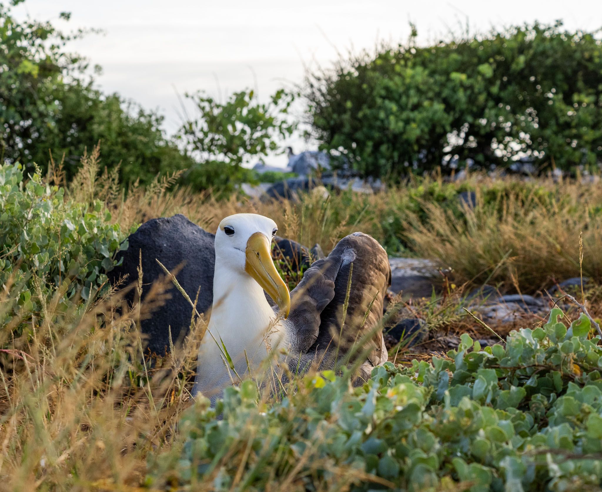 In the afternoon, we hiked on Suárez Point. This is the only site in the archipelago where we can find the very famous waved albatross. We walked a rocky trail and spotted marine iguanas and lava lizards with nearly every step before reaching the nesting grounds of Nazca boobies and the albatrosses. These wonderful and magnificent marine birds nested and displayed for their mates. We observed the beauty of these animals as we enjoyed the sunset. It was a spectacular first full day.