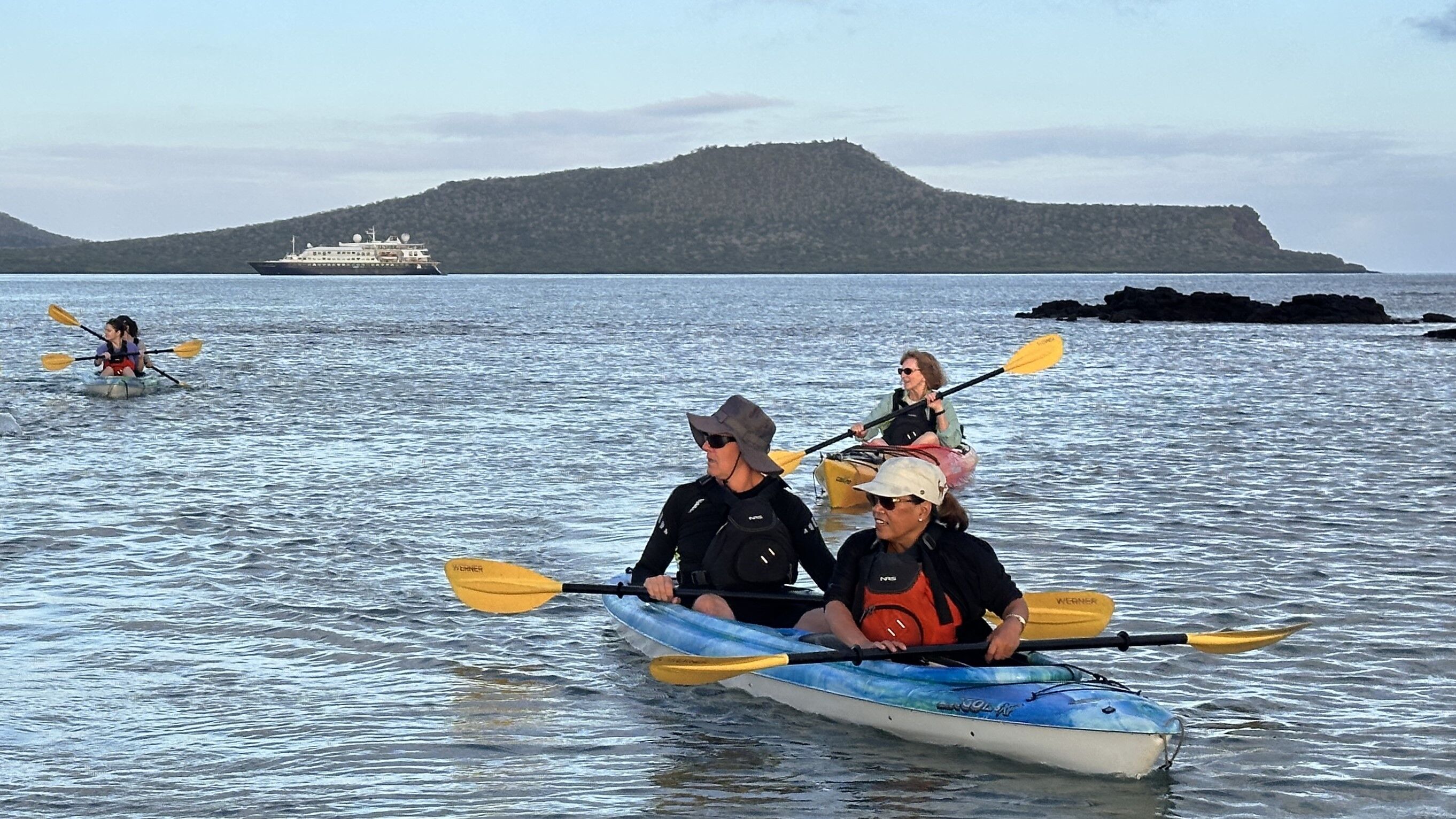 Our first outing was a snorkel exploration of a small islet located on Gardner Bay, where we observed sharks, sea lions, sea turtles, spotted eagle rays, and many colorful fish! The temperature of the water, great visibility, and an abundance of life made for an outstanding first deep-water snorkel. We also walked and swam on a beautiful white sand beach next to the big colony of sea lions that live here.