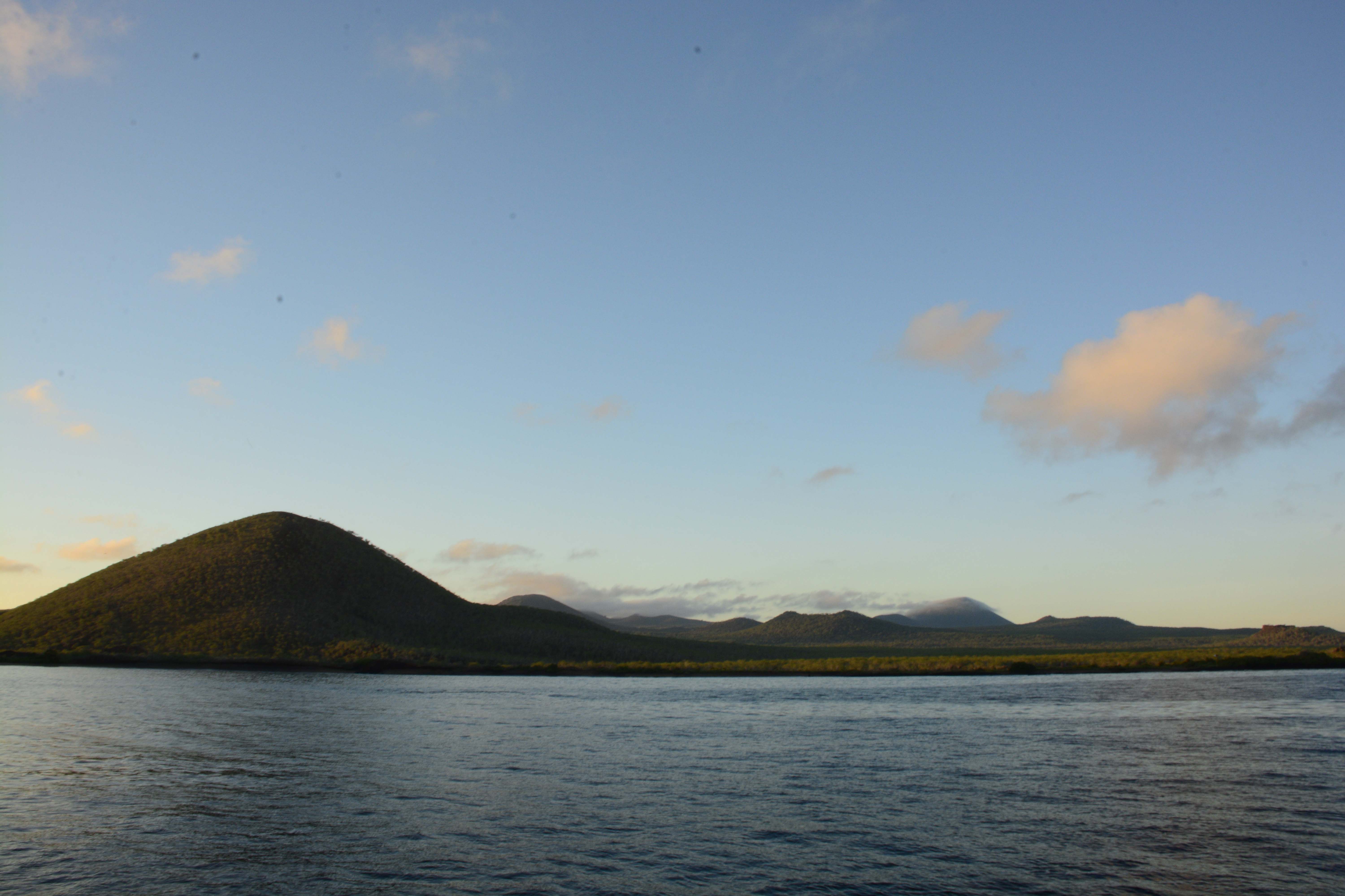 Relatively small and low compared to neighboring Santa Cruz, North Seymour is located to the north of Baltra. The island is dry with predominantly low shrubs, like prickly pear cacti. The incense trees are bare during the dry season. Seabirds like frigatebirds and blue-footed boobies nest on the island, and sea lions rest on the sand when they are not fishing. Land and marine iguanas also live here. Rabida is in the middle of the archipelago and has a striking red sand beach. We observed a small colony of sea lions of all ages resting or nursing. Behind the beach, American flamingos nest in a brackish lagoon. This island is full of contrasts and wildlife that we enjoyed observing during this day of expedition.