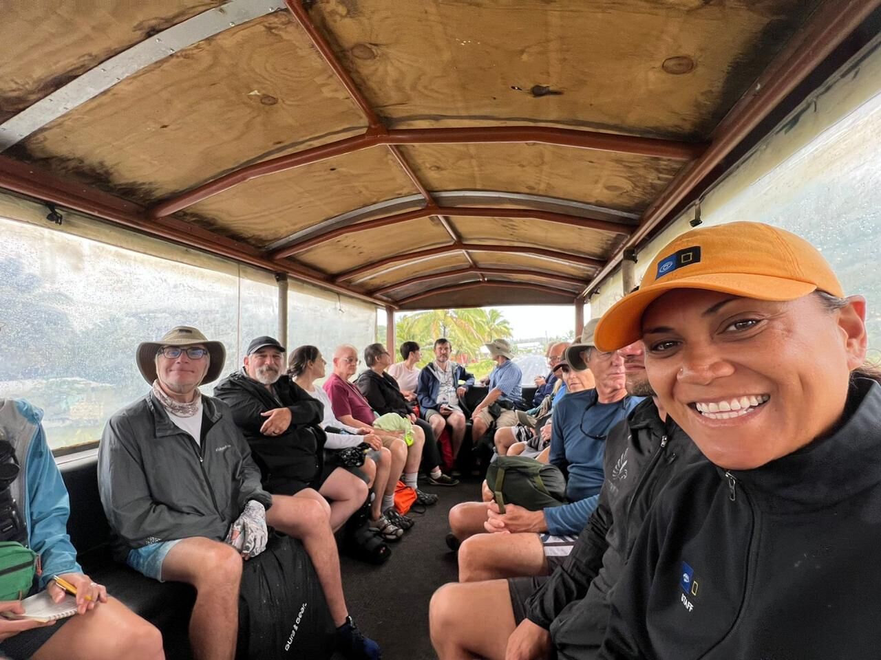 Today, National Geographic Orion docked at a pier in Luganville on the island of Espiritu Santo, which is a part of the island nation of Vanuatu. We were greeted at the pier by a group of warriors who performed a traditional dance. We then visited the South Pacific World War II Museum, which was small but mighty. There were artifacts brought up from the SS President Coolidge, which was sunk off the coast during World War II. Near the museum, we looked at some of the military detritus left by the Americans after the war.