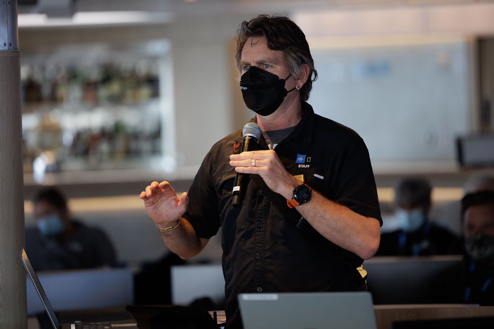 We started the day with excitement as we landed on the beautiful, pristine coast of Isla Genovesa - a true birder’s dream. Along the sandy beaches and steep cliffs of Darwin Bay, we were surrounded by an incredible array of birdlife. Frigatebirds soared closely overhead with their red pouches on full display, while Nazca and blue-footed boobies nested along the rocky ledges. Swallow-tailed gulls called out as we walked past. In the distance, we saw the stoic and elusive short-eared owl. The island was alive with color, sound, and constant movement. Between our excursions to Isla Genovesa, we snorkeled near Prince Philip’s Steps and discovered a vibrant world beneath the waves. Schools of fish swirled around us, a fur seal turned in the water as if dancing on cue, and sea lions relaxed nearby. As our last snorkeling adventure came to a close, we spotted a sea turtle resting calmly in a crevice. As the sun retreated into the sky on our last return to National Geographic Endeavor II, we reflected on the sheer magnitude of what we witnessed on our last full day. Isla Genovesa, like the other islands, gave us a connection to a sacred world. The harmony between land, sea, and sky reminded us how deeply interconnected, vital, and fragile these ecosystems are. Watching birds tend to their nests and marine life swim effortlessly, we were struck by how little space there is between wonder and reverence. We recognized that our journey wasn’t just about observing unique wildlife, it was about feeling part of something grander and beautifully ancient.