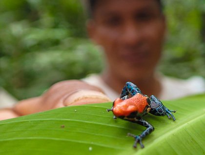 Early in the morning, we took off for our first skiff exploration through the smaller tributaries of the Marañón River. Shortly after starting our search through the jungle, we found our first three-toed sloth, well camouflaged up on a tree. There were more birds and a small troop of squirrel monkeys.