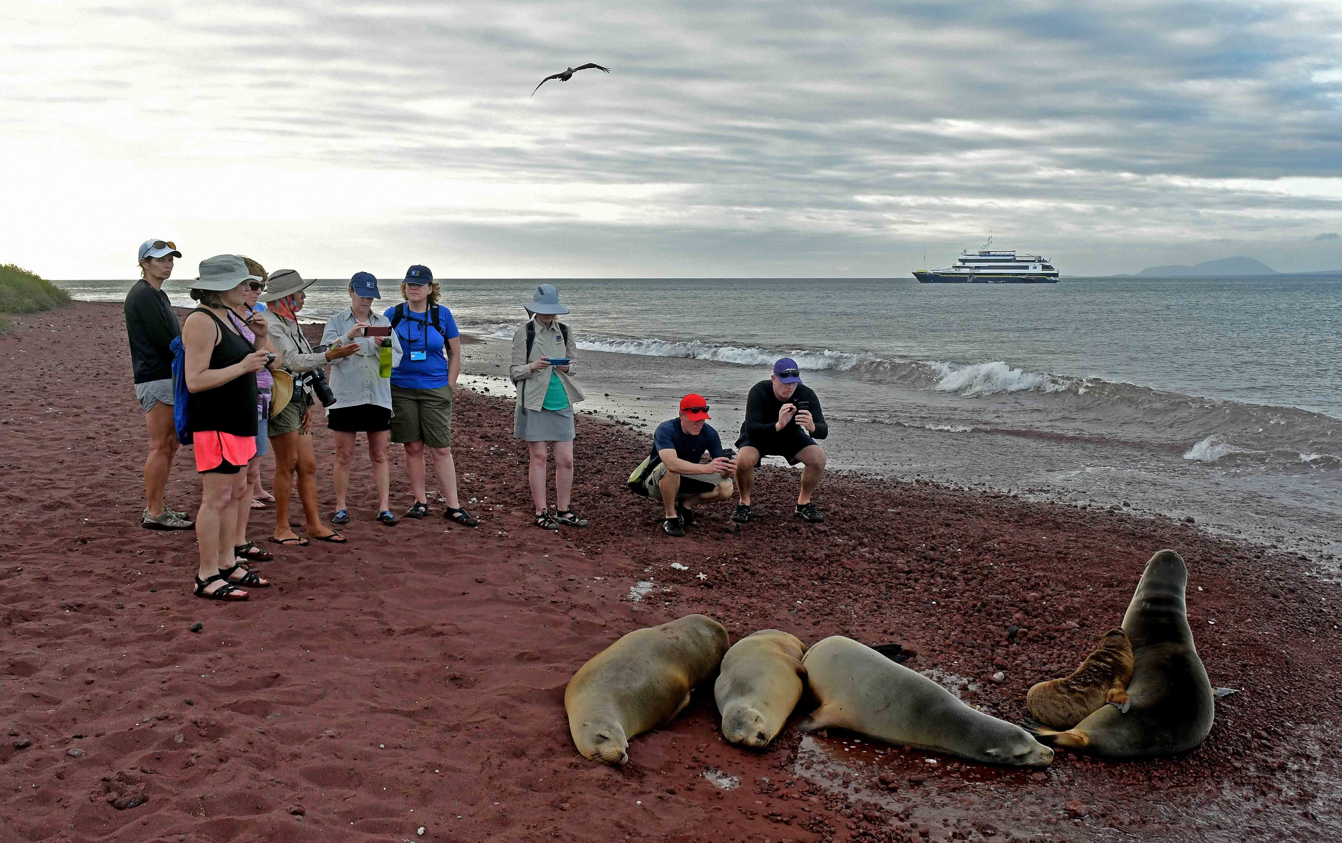 We started the day with excitement as we landed on the beautiful, pristine coast of Isla Genovesa - a true birder’s dream. Along the sandy beaches and steep cliffs of Darwin Bay, we were surrounded by an incredible array of birdlife. Frigatebirds soared closely overhead with their red pouches on full display, while Nazca and blue-footed boobies nested along the rocky ledges. Swallow-tailed gulls called out as we walked past. In the distance, we saw the stoic and elusive short-eared owl. The island was alive with color, sound, and constant movement. Between our excursions to Isla Genovesa, we snorkeled near Prince Philip’s Steps and discovered a vibrant world beneath the waves. Schools of fish swirled around us, a fur seal turned in the water as if dancing on cue, and sea lions relaxed nearby. As our last snorkeling adventure came to a close, we spotted a sea turtle resting calmly in a crevice. As the sun retreated into the sky on our last return to National Geographic Endeavor II, we reflected on the sheer magnitude of what we witnessed on our last full day. Isla Genovesa, like the other islands, gave us a connection to a sacred world. The harmony between land, sea, and sky reminded us how deeply interconnected, vital, and fragile these ecosystems are. Watching birds tend to their nests and marine life swim effortlessly, we were struck by how little space there is between wonder and reverence. We recognized that our journey wasn’t just about observing unique wildlife, it was about feeling part of something grander and beautifully ancient.