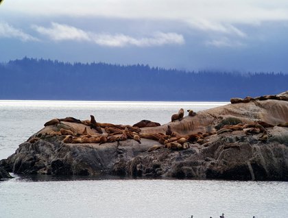 We dropped anchor at Fernandina Island. It was a nice sunny morning with a clear blue sky, and Fernandina Island, the world’s largest pristine island in the world, the youngest of the Archipelago, was awaiting us. Over the innumerable lava flows, which at first sight seems lifeless, we noticed a large number of marine iguanas lying basking in the sun, hugging each other to warm up. These unique animals are found only in the Galapagos, and they are so tame that they ignore us, and we were able to get very close and capture some amazing photographs. It is so hard to see them among the dark rocks that we had to walk very cautiously to avoid stepping on them. This scene was so picturesque, with the colorful sally lightfoot crabs standing out brilliantly against the dark rocks. Not too far away, under the shade of a mangrove tree, a female sea lion was lying with her newborn, the placenta was still at one side, and the cries of the baby sea lion and the tenderness between the mother and her pup was an unforgettable scene to witness. Along the shore, we encountered several playful sea lion pups, which always seem to pose for the cameras. During the walk, we were fortunate to see a pair of flightless cormorants; the male was very busy looking for nesting material, going into the water and coming back with sea weed, while the female cormorant placed the materials in the right position. This is truly an amazing place, and we left with memories that will last forever!