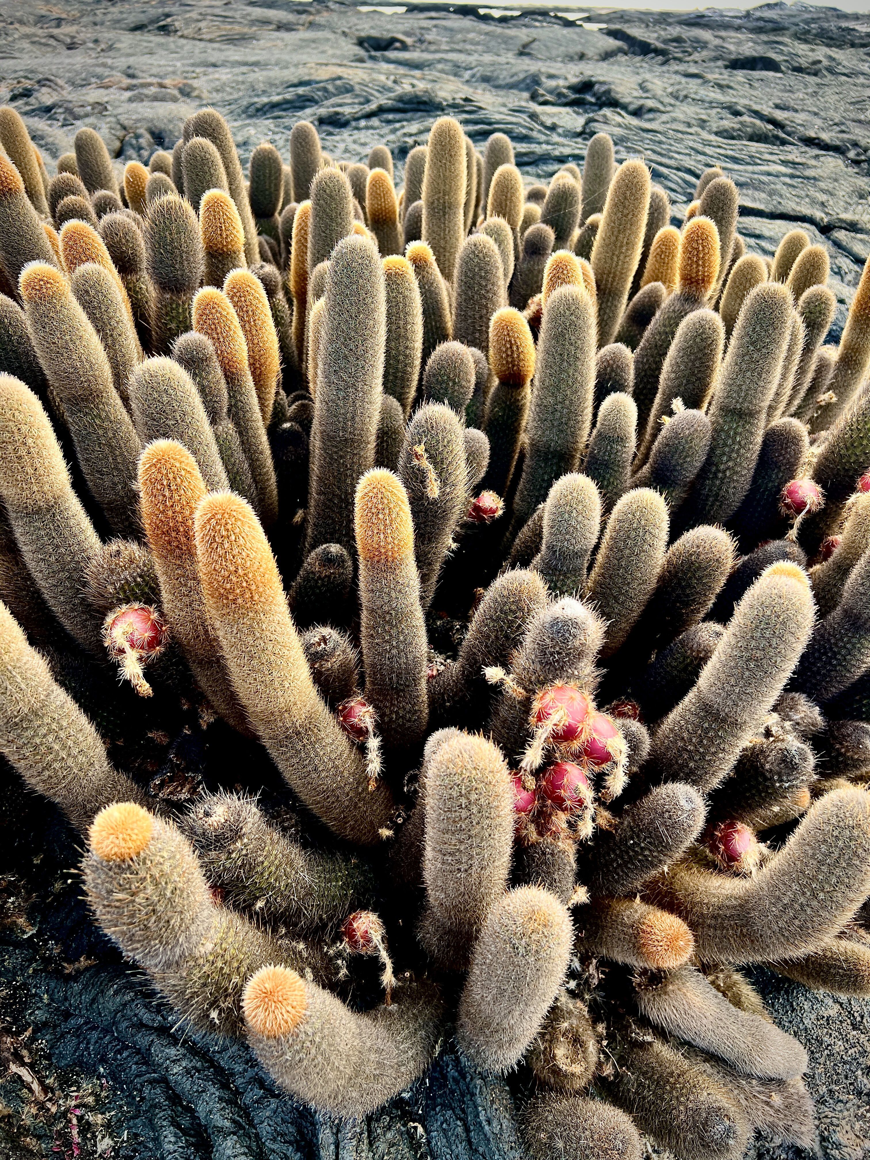 Photo caption and photographer: Lava cactus with fruits on the lava field of Punta Espinoza on Fernandina Island. Photo by Paola Luque