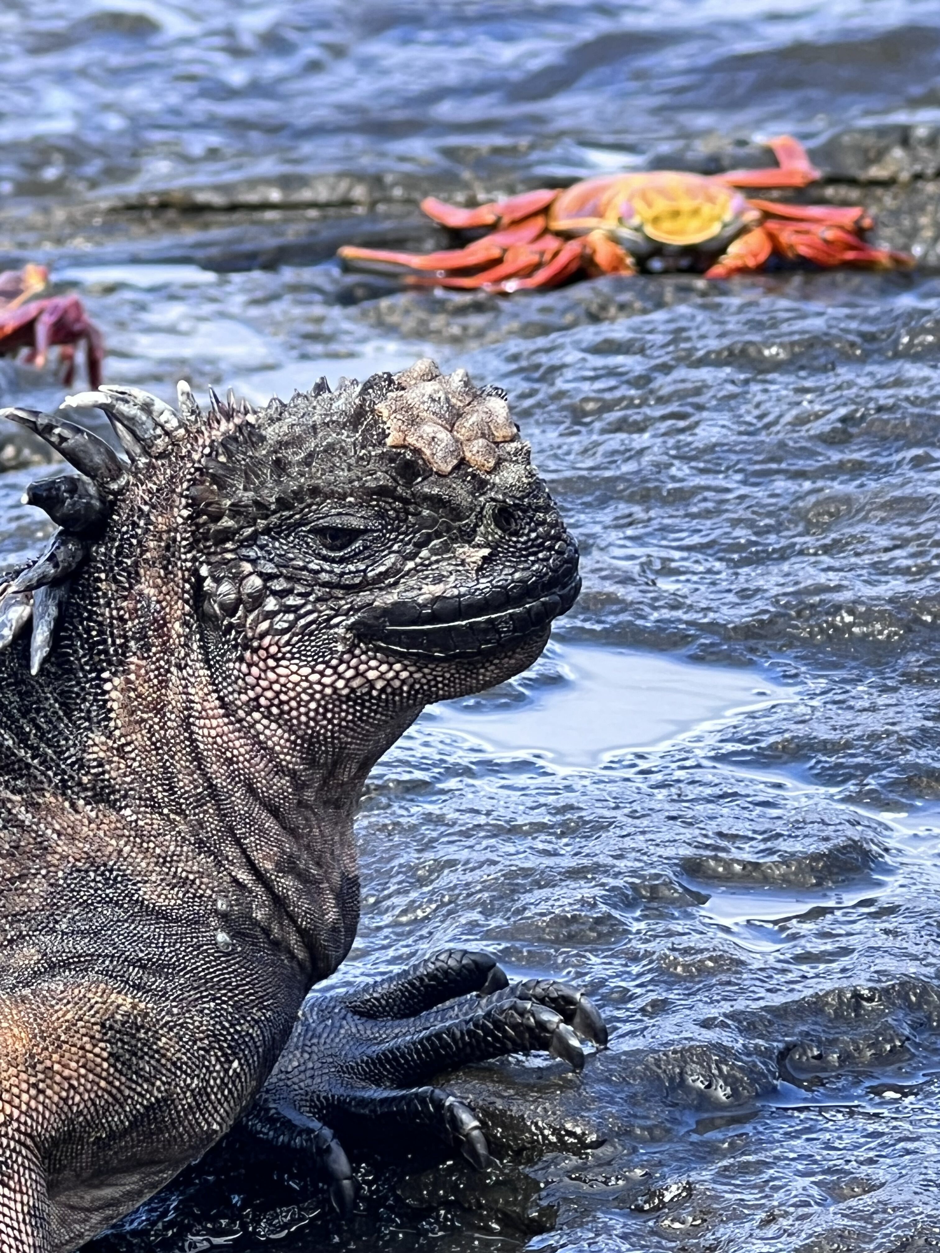 We woke up to the incredible view of a series of volcanoes along the coast of Isabela Island. Isabela is the largest island of the Galapagos, and it is home to five species of giant tortoise. After breakfast, we crossed the equator line into the southern hemisphere to explore the “head” of this sea-horse-shaped island. We rode Zodiacs to look for wildlife along the rocky shores of Isabela. We were lucky to spot a couple of Galapagos penguins, flightless cormorants, sea lions, and blue-footed boobies fishing.