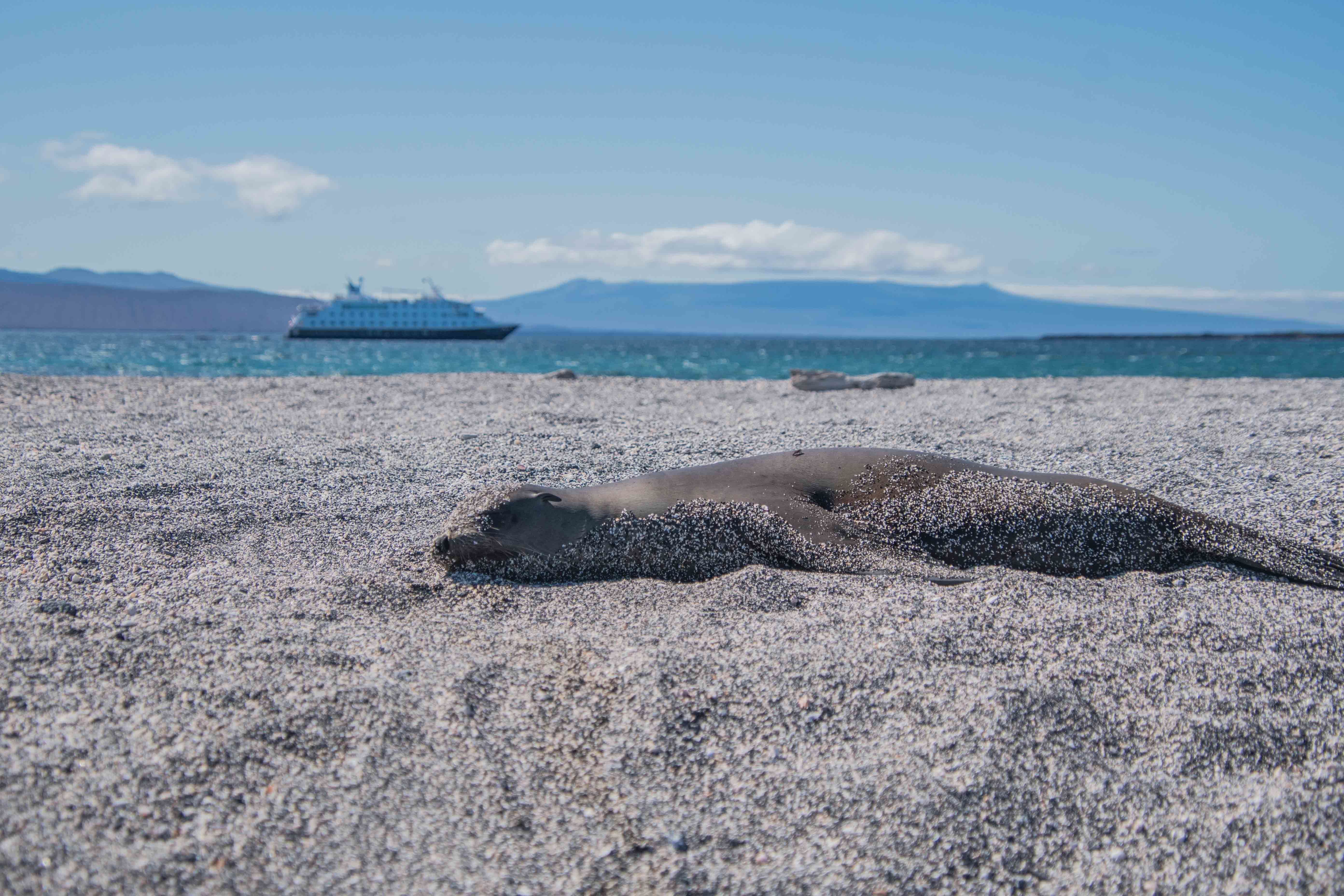 We started the day with excitement as we landed on the beautiful, pristine coast of Isla Genovesa - a true birder’s dream. Along the sandy beaches and steep cliffs of Darwin Bay, we were surrounded by an incredible array of birdlife. Frigatebirds soared closely overhead with their red pouches on full display, while Nazca and blue-footed boobies nested along the rocky ledges. Swallow-tailed gulls called out as we walked past. In the distance, we saw the stoic and elusive short-eared owl. The island was alive with color, sound, and constant movement. Between our excursions to Isla Genovesa, we snorkeled near Prince Philip’s Steps and discovered a vibrant world beneath the waves. Schools of fish swirled around us, a fur seal turned in the water as if dancing on cue, and sea lions relaxed nearby. As our last snorkeling adventure came to a close, we spotted a sea turtle resting calmly in a crevice. As the sun retreated into the sky on our last return to National Geographic Endeavor II, we reflected on the sheer magnitude of what we witnessed on our last full day. Isla Genovesa, like the other islands, gave us a connection to a sacred world. The harmony between land, sea, and sky reminded us how deeply interconnected, vital, and fragile these ecosystems are. Watching birds tend to their nests and marine life swim effortlessly, we were struck by how little space there is between wonder and reverence. We recognized that our journey wasn’t just about observing unique wildlife, it was about feeling part of something grander and beautifully ancient.