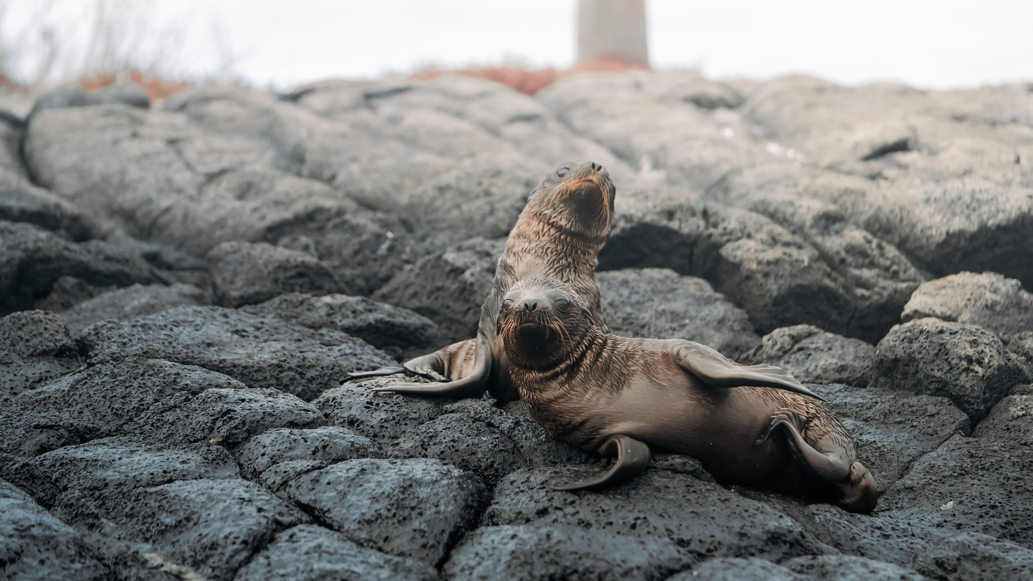 This morning, we embarked on a scenic hike at Punta Pitt, San Cristóbal Island, where we found all three booby species - red-footed, blue-footed, and Nazca. We also took a Zodiac ride along the rugged coastline for close-up views of dramatic cliffs, surrounded by seabirds and sea lions basking in the sun. In the afternoon, we kayaked around Cerro Brujo’s golden cliffs, followed by a relaxing stroll along its pristine white-sand beach. Some even enjoyed a refreshing swim in the turquoise waters. This perfect day ended with a cruise around Kicker Rock, lit in the golden light of sunset.