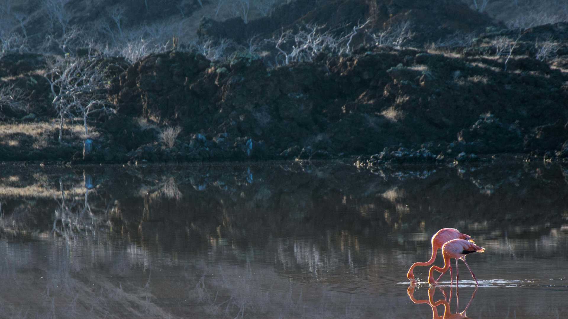 Today we visited Floreana Island in the southern region of the Galapagos archipelago. We started our day with an early morning walk on Punta Cormorant. This was an amazing visit, as we were able to see Galapagos penguins swimming at the sea, and Galapagos flamingos feeding on the brackish lagoon of Floreana. Nowhere else in the world we can have this experience: penguins and flamingos in the same place! After such an exciting pre-breakfast walk, we came back onboard for breakfast.