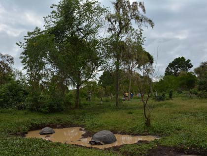 Early in the morning we headed to Punta Cormorant with its green beaches dotted with sea turtle tracks. Along the bushes some pelicans rested, attentively watching the ocean looking for fish. After walking a long the trail awhile, we reached a brackish lagoon occupied by some flamingos, black necked stilts, pintails and whimbrels feeding on crustaceans, while along the palo santo trees yellow warblers fluttered indicating the arrival of rainfall. We arrived at the second beach which, white in color, contrasted with the olivine beach we first visited. We observed a turtle dragging its heavy body to the ocean, leaving behind the evidence of hard work. It takes great stamina to make the nest, lay her eggs and make her way back to sea.