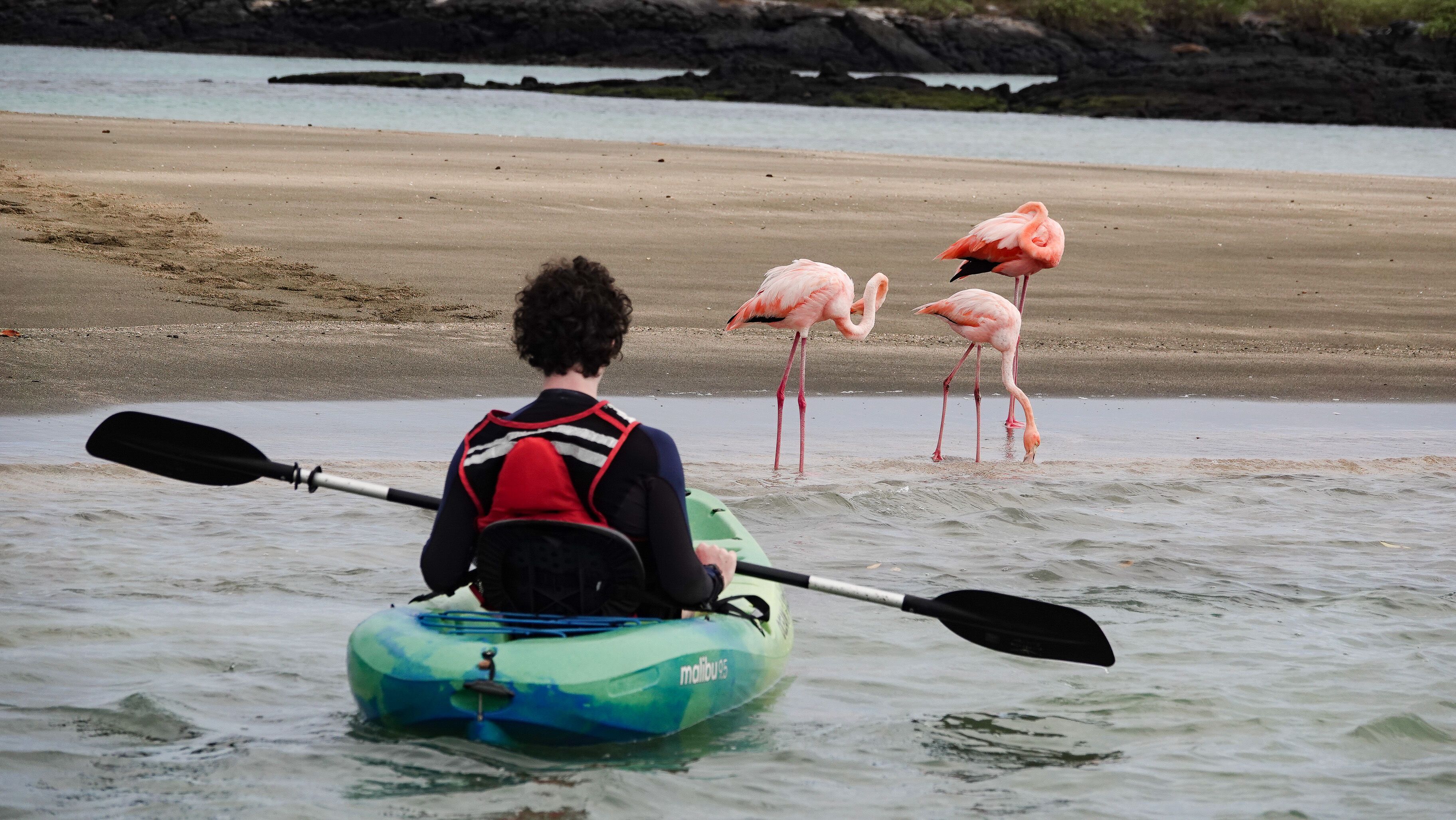 The day was filled with activities. The morning was spent paddling within the Loberia of Post Office Bay, while others explored by Zodiac. We saw sea lions, turtles, and Floreana cacti inhabiting the lava islets. All of this was separated by shallow, tranquil lagoons during this exceptionally low tide. The visit to the barrel at Post Office Bay was successful (postcards taken for future delivery) and ended with intrepid swimmers and snorkelers who ventured from beach to ship.