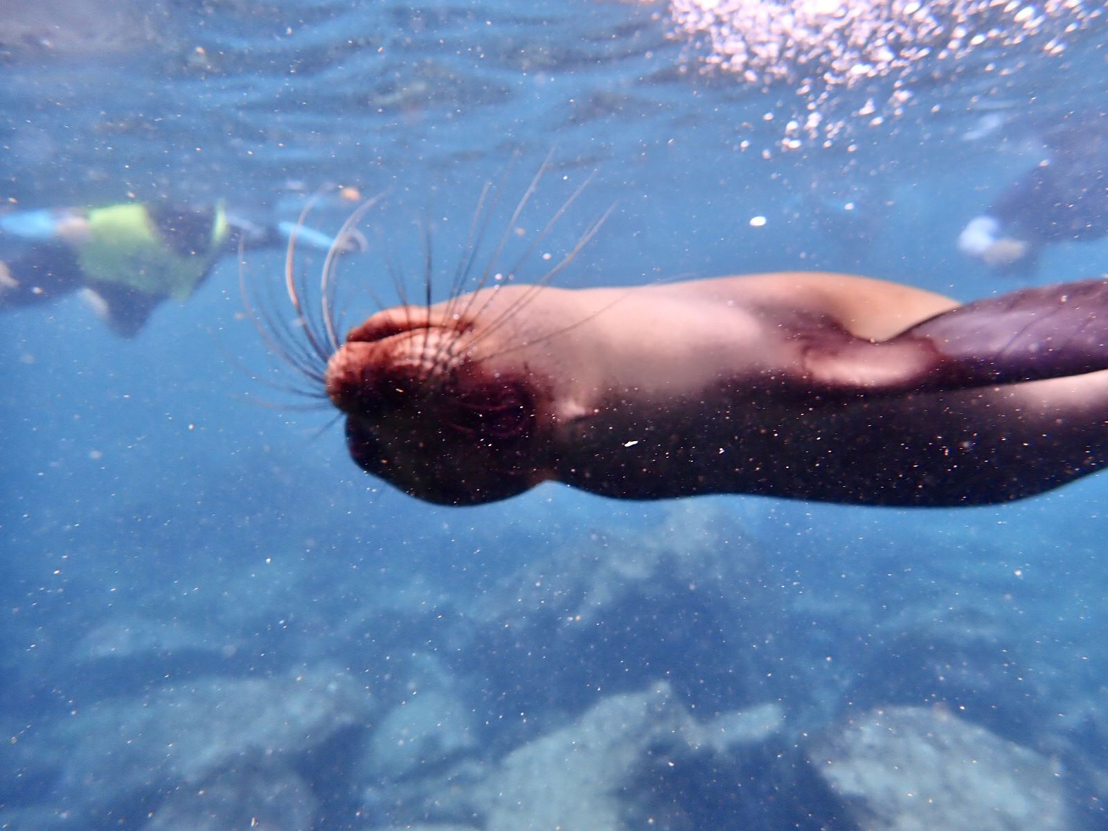 After visiting Post Office Bay, we had breakfast and got ready to explore the underwater world of the Galapagos by going on a deep-water snorkeling outing around Champion Islet (a satellite islet of Floreana). We saw plenty of playful Galapagos sea lion pups while snorkeling, as well as some whitetip reef sharks swimming along the coast and large species of fish.